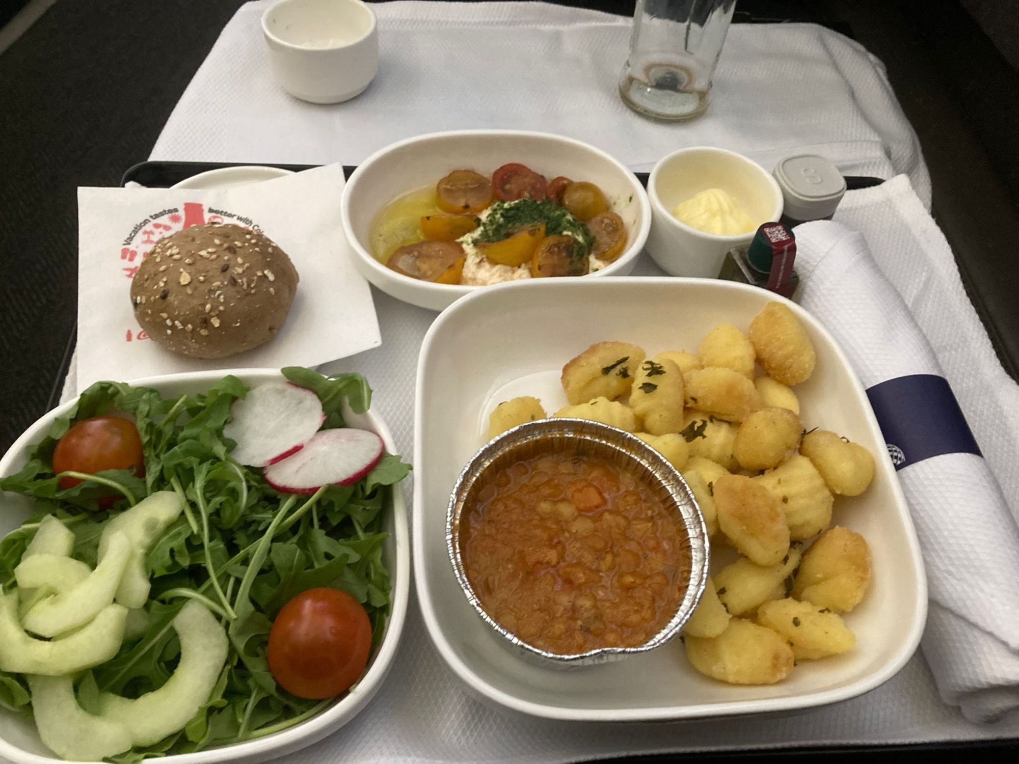 For the pre-arrival meal I ordered the penne pasta with chicken. I was served some sort of pasta (not penne) and there was no chicken. In fact I'm pretty sure they had used the same sauce as the gnocchi. Didn't get a picture of it, but judging by the other pictures in this thread w/ the chicken pasta, this was definitely not it.