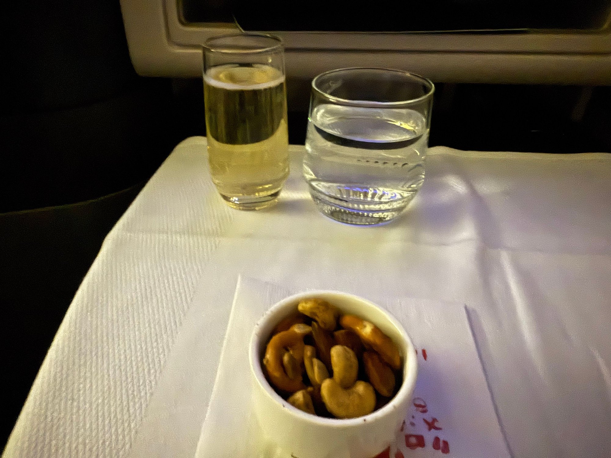 Nuts stale and cold and lots of pretzels (and I forgot to ask for wine glass for the LP).