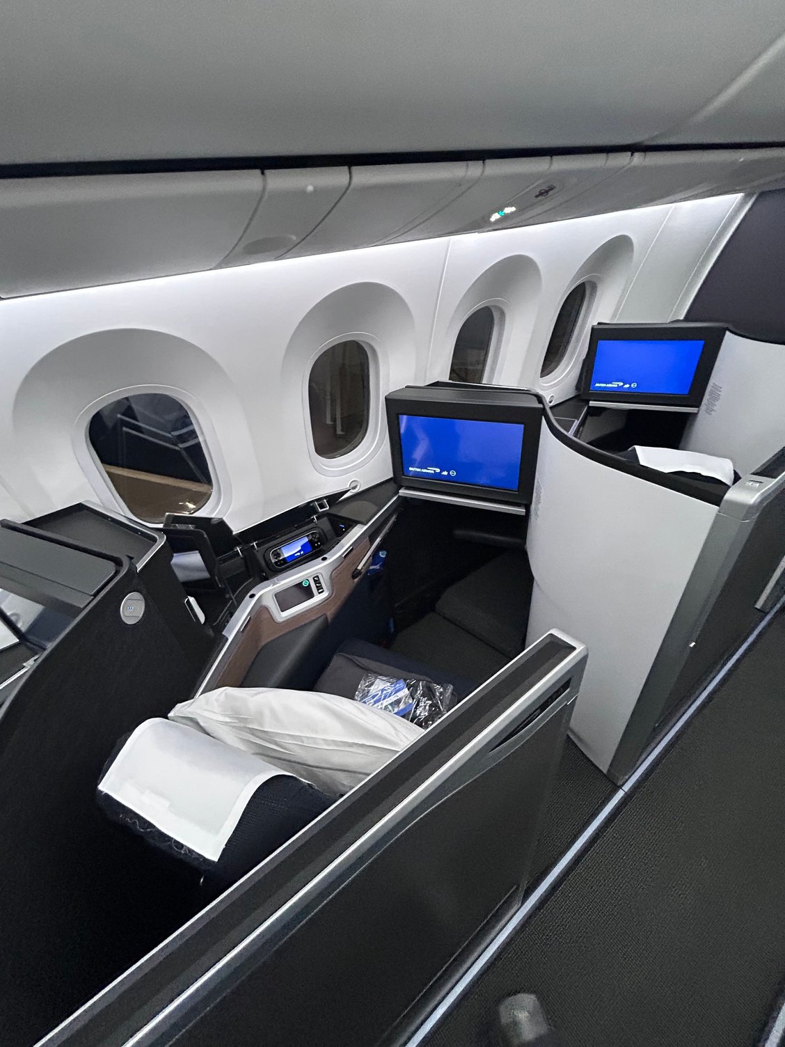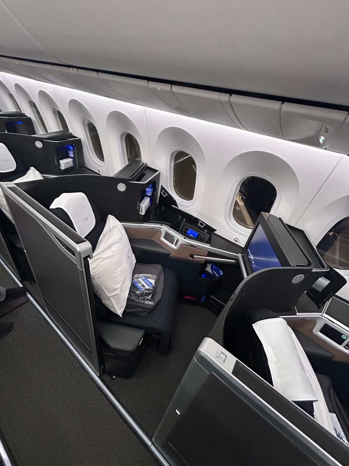 2100 / 0300 UK we hop on to the plane. Business means business today: no upgrade to Flub, so club suite with a door. It’s also quite an empty flight.