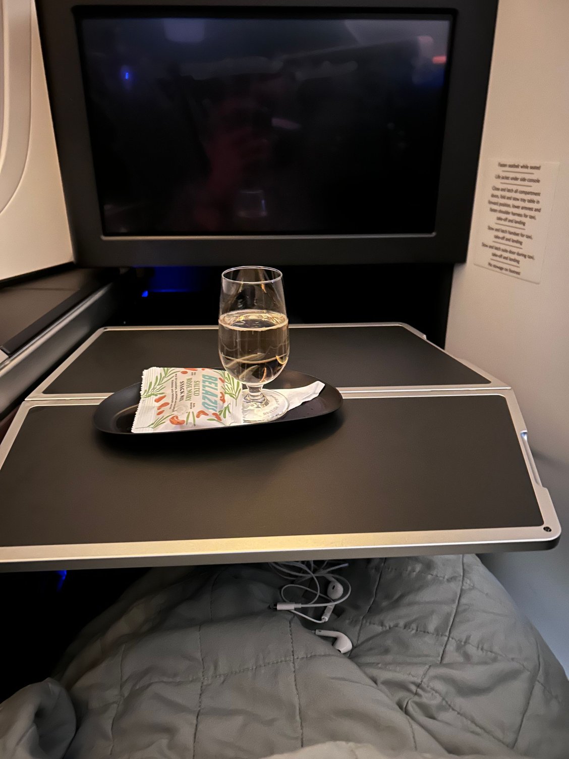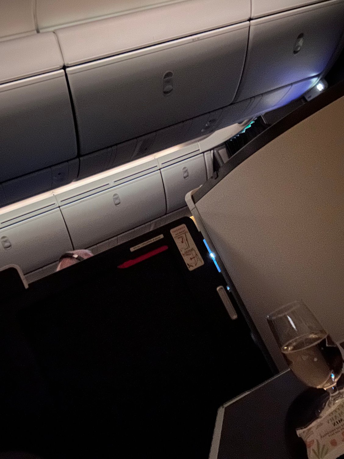 2221 / 0421 yours truly spills his champagne everywhere! Lucky i had the blanket on. Crew was great, didn’t make me feel like an idiot & got me new bedding (spare seats helped!). Now 13A smells of champagne; I’m not mad at it.