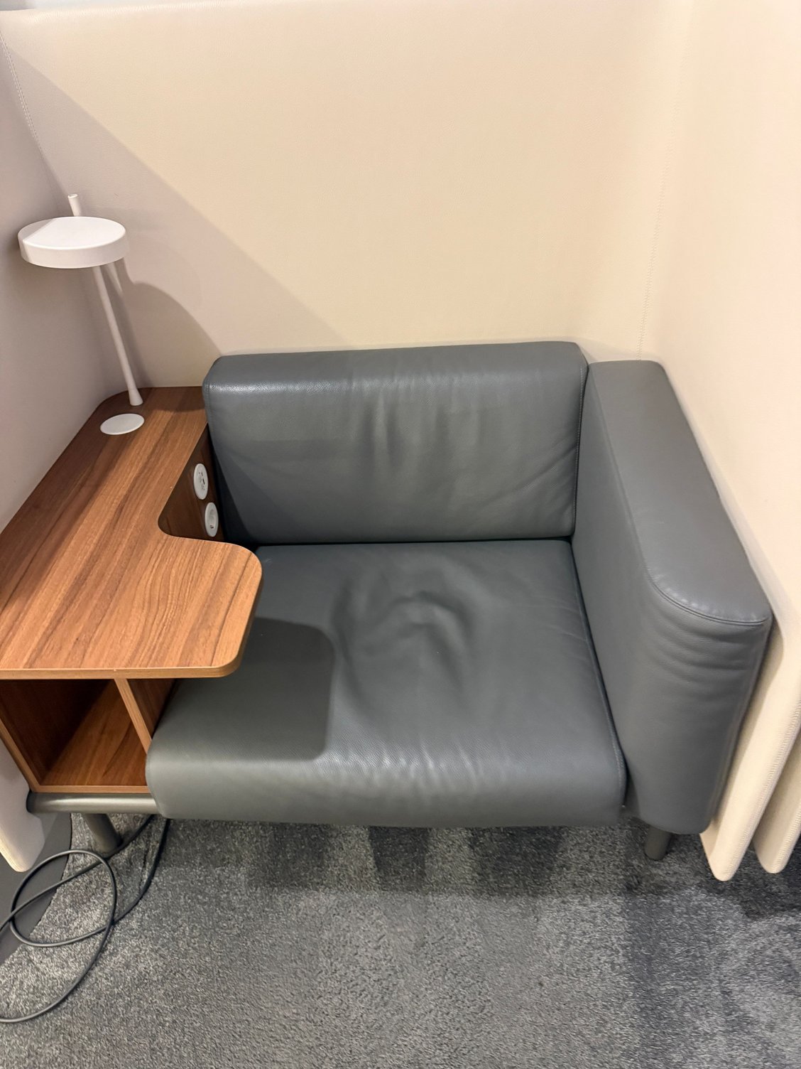 In the lounge I found those seat, which are quite good for a short stay. Unfortunately, power ports in first one were not working, so I had to move to another.