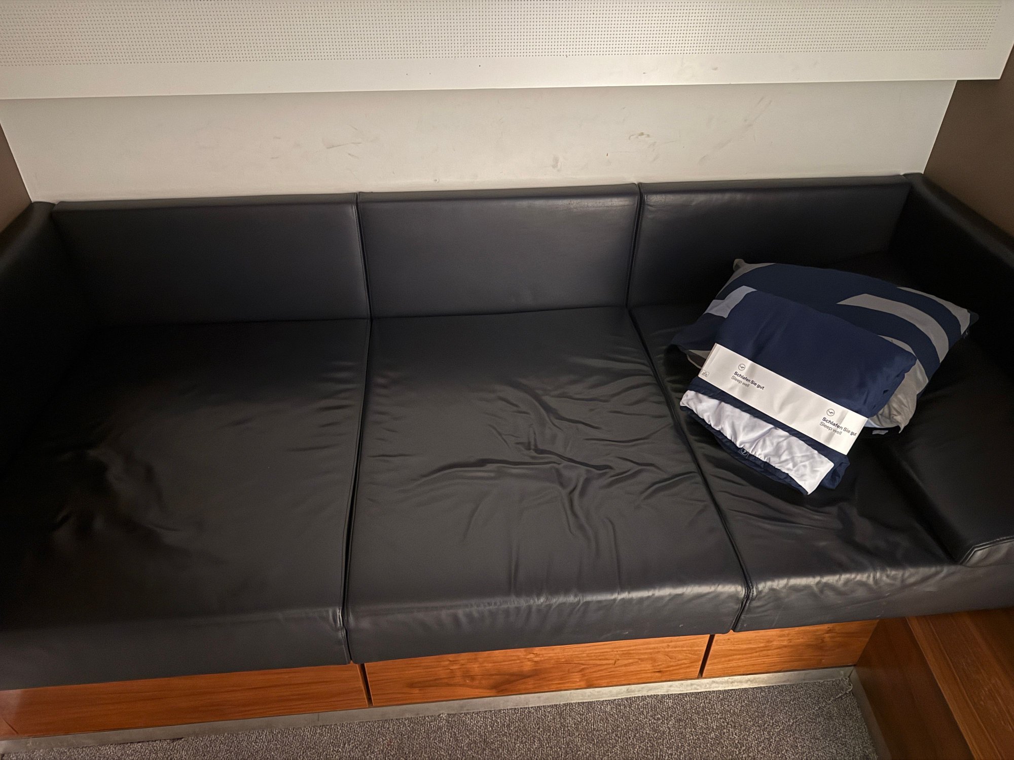 Flight was really empty for LH standards (maybe 50% load), so my neighbor from C seat found his own row in 6 or 7, so I ended up with row for myself. Nice.