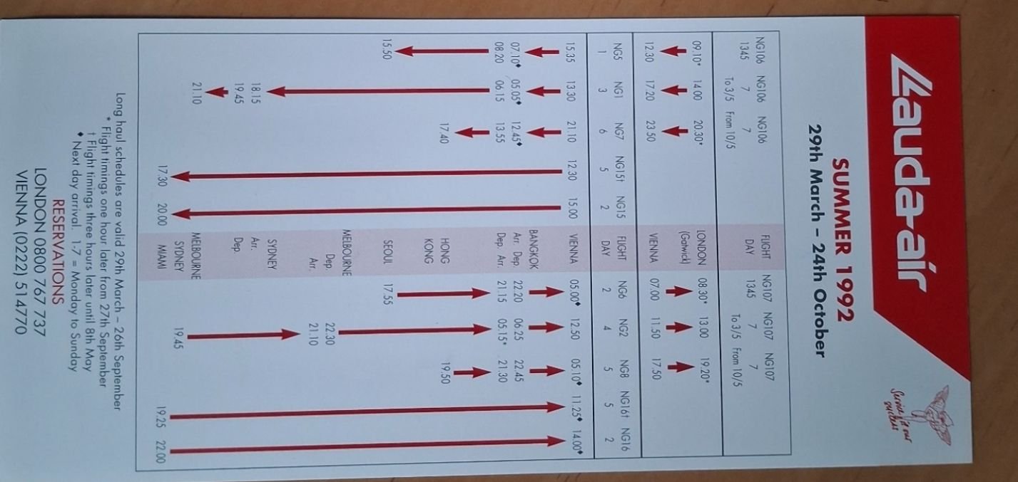 FlyerTalk Forums - View Single Post - 1992 Lauda Air Timetable