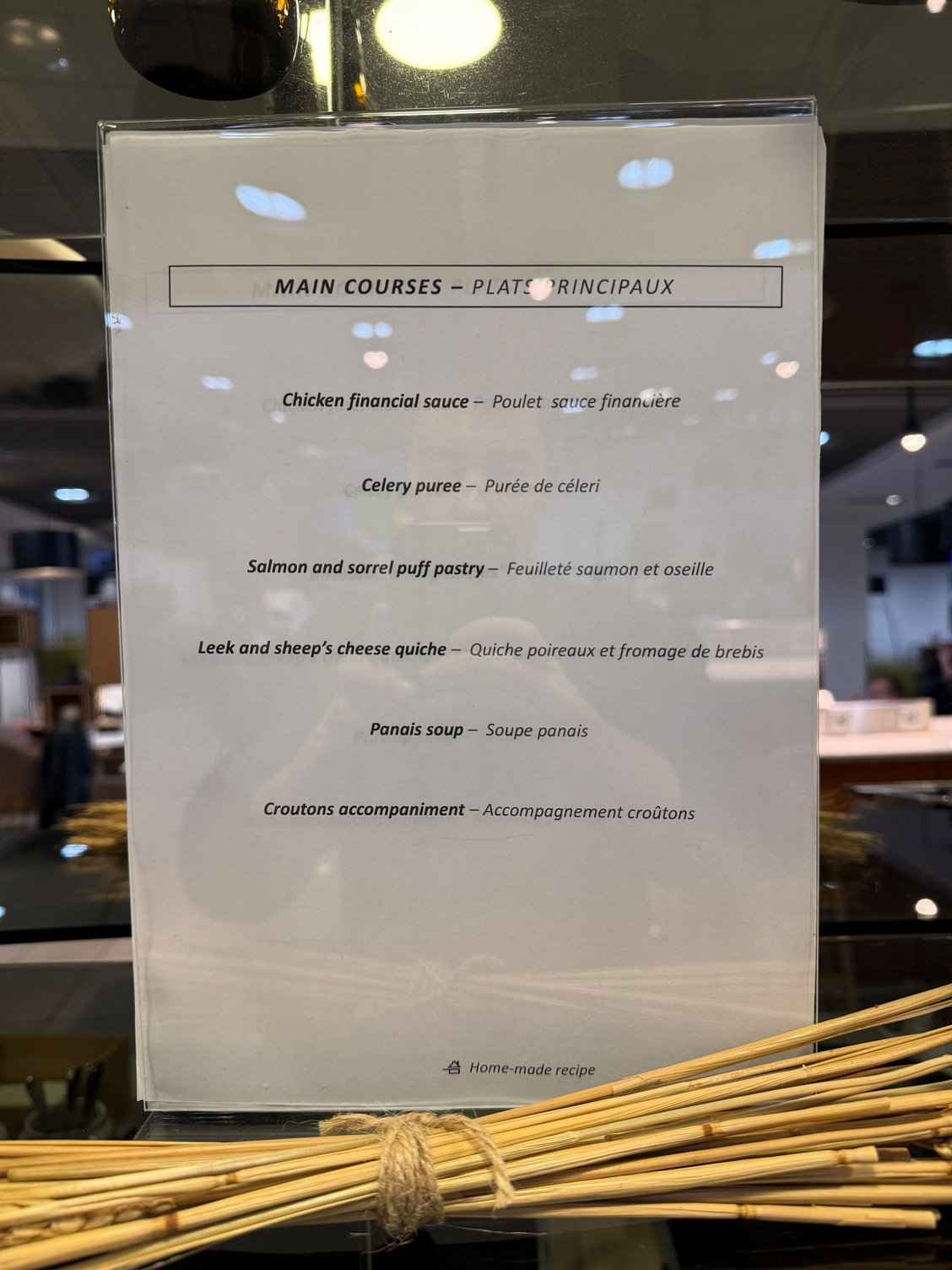 I was full after the lunch, so the only thing that I ate was the sample of the Financier Chicken, just to taste it. OK dish. I also sampled some cremant and red wine .