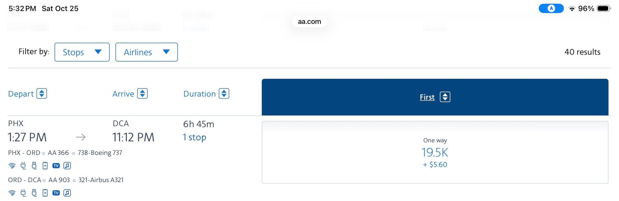 FlyerTalk Forums - View Single Post - PHX-DCA/NonStop VS ORD Connection/7k MCE Exit Window Non Stop VS 19.5k Connecting FC?