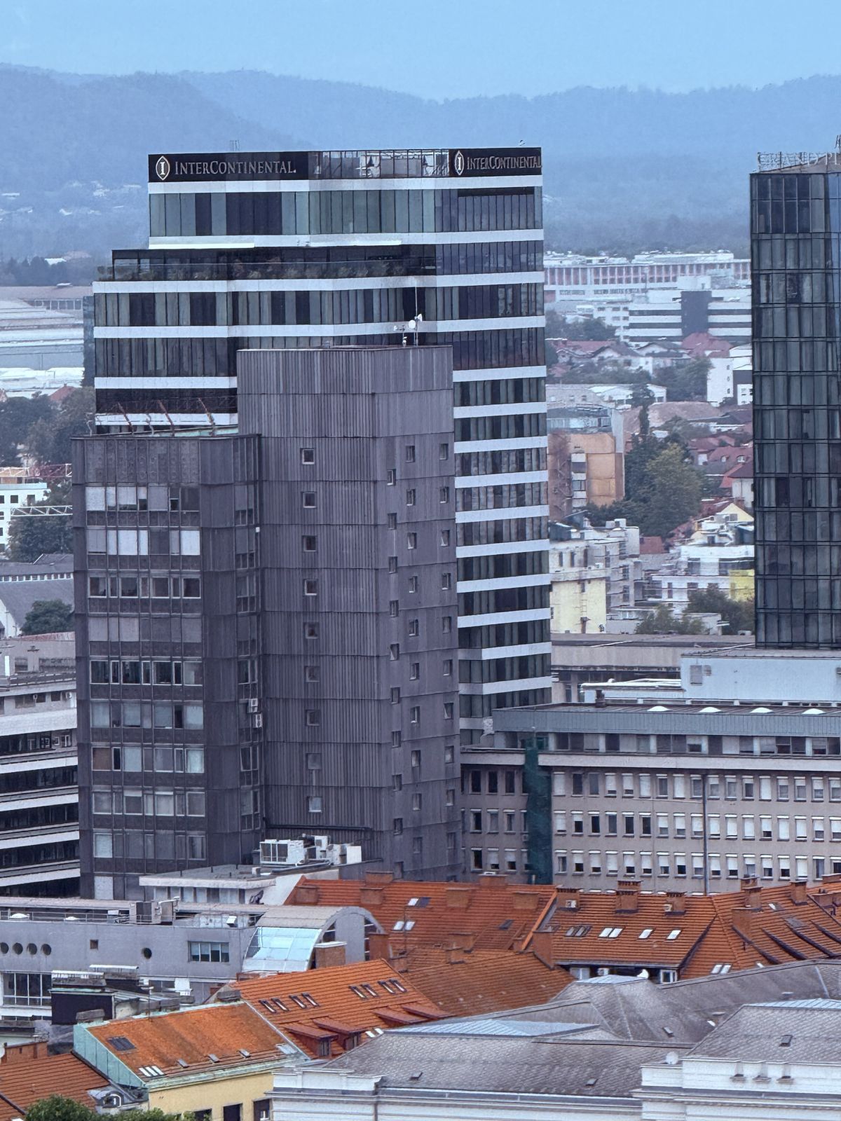 Ljubljana isn't exactly blessed with top hotels, so I chose the Intercontinental. Apart from the Intercontinental, there is only one other 5-star hotel in the city, the Grand Plaza opposite. The hotel is located in a high-rise building that it has all to itself, so a touch of the big wide world.