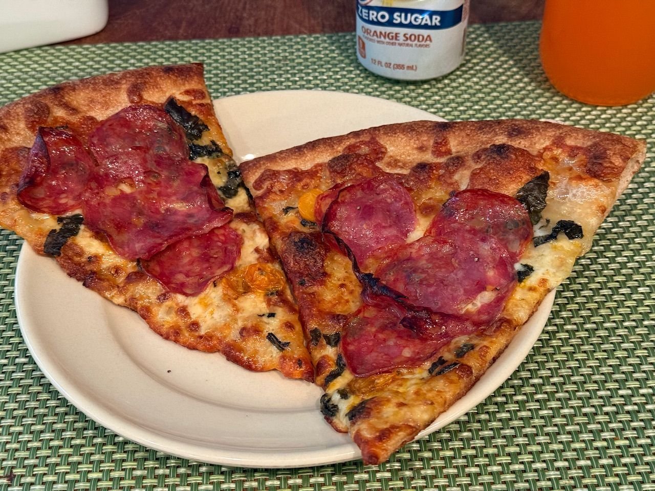 leftucer cherry tomato pizza with added salamis