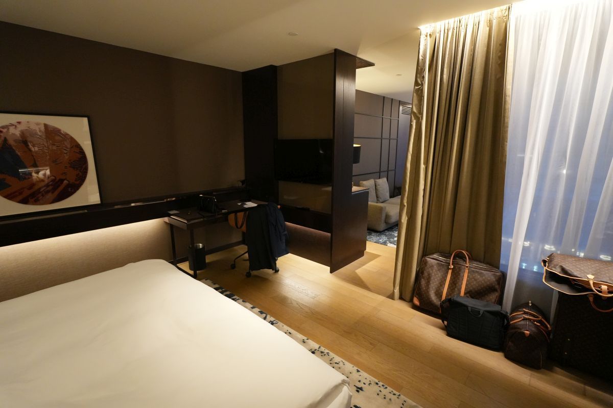 One of the photos already shows the problem with the living room. It opens onto the bedroom and is more like a small extension of the room with a sofa. For me, this is a junior suite, but certainly not a one-bedroom suite.