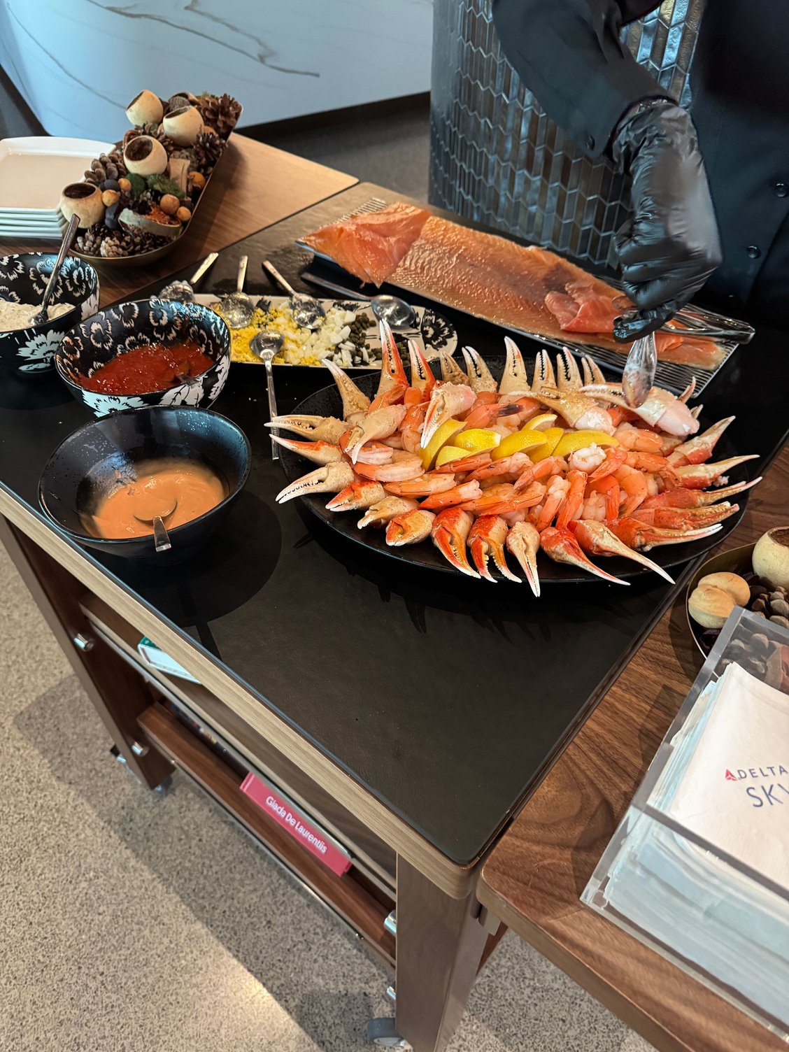 100 yards away Delta had snow crab claws, shrimp cocktail, smoked salmon and pulled pork so it was a night and day difference when it came to f&b.