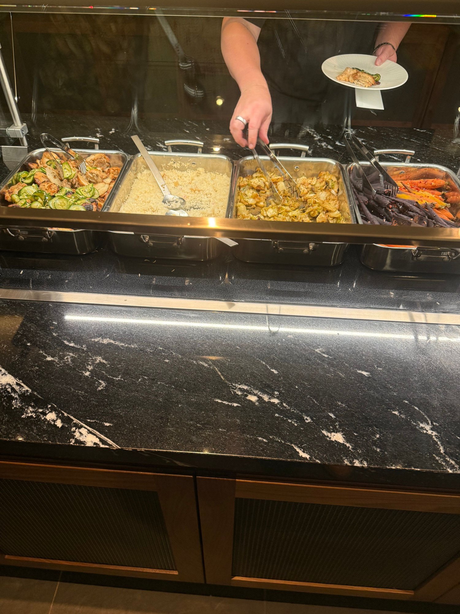 Flew in today for the grand opening. It's a beautiful space and very large. IThis lounge is a lot more attractive than the cookie cutter look we mostly have on the west coast. Today it was completely empty maybe because nobody knows it's open and it's at the very end of B which has little traffic. At this point not sure why anyone would choose this lounge. Something like 70% of traffic is Delta here and the new Sky Club also in B is much nicer and conveniently located. The Skyclub felt more airy and open with higher ceilings and inviting spaces. For the grand opening, Amex served some dead looking boiled cabbage, roasted carrots, rice, and some dry chicken as the hot foods. Nothing except two types of cookies in terms of desserts.