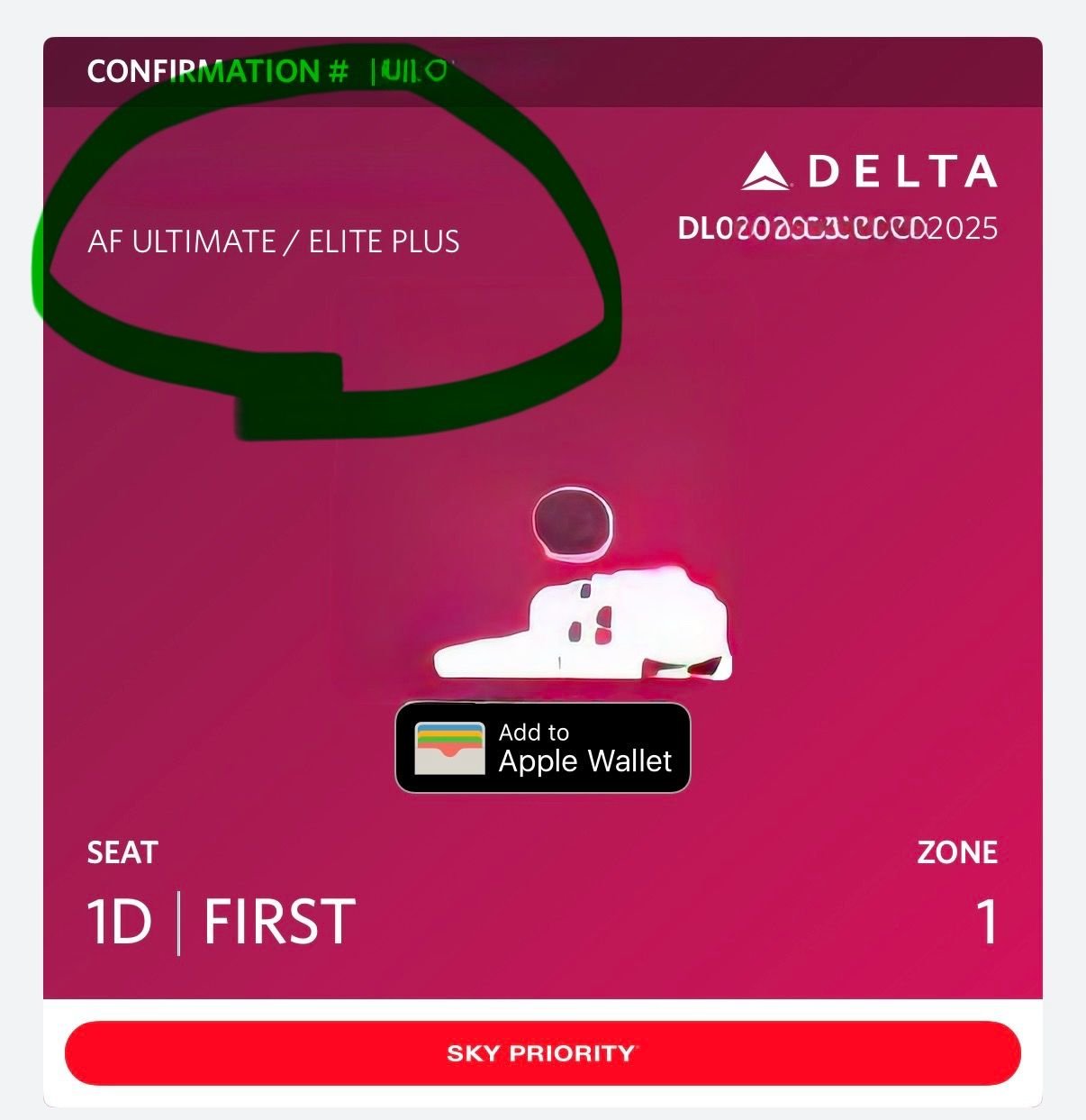 Interesting to see that Delta is managing to show my ULTIMATE status properly on pure DL domestic flights whilst AF boarding cards are still showing Platinum 50% of the time