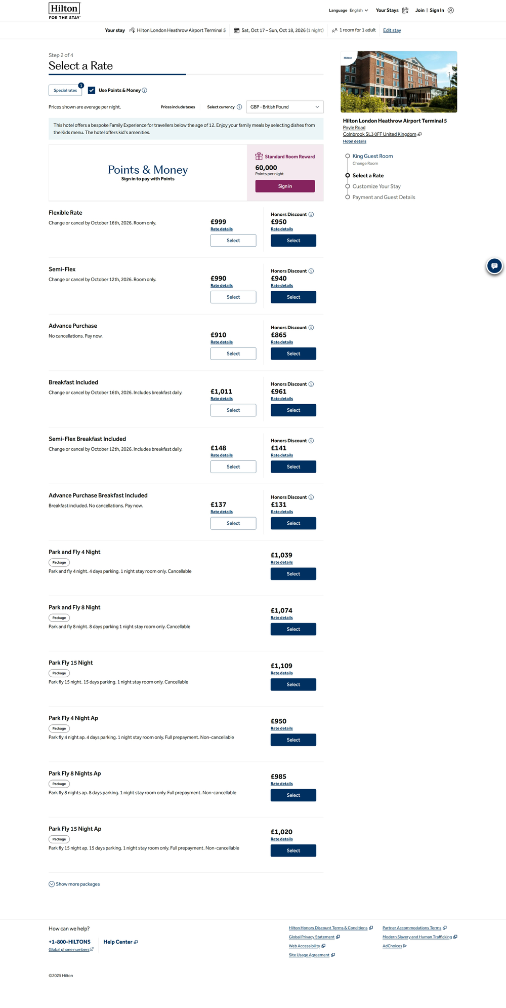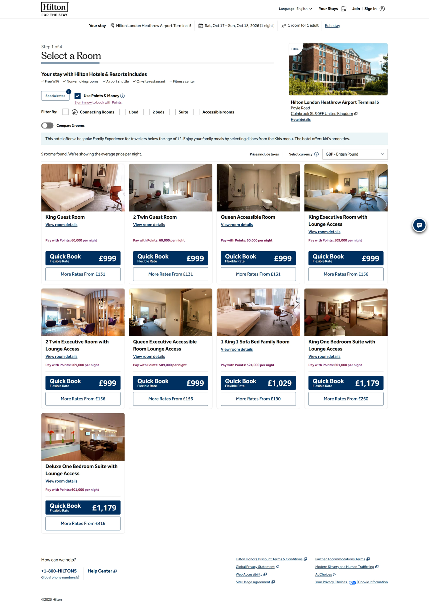 Another one - Hilton London Heathrow Airport Terminal 5 - Oct 17, 2026 - 999 GBP vs 131 GBP