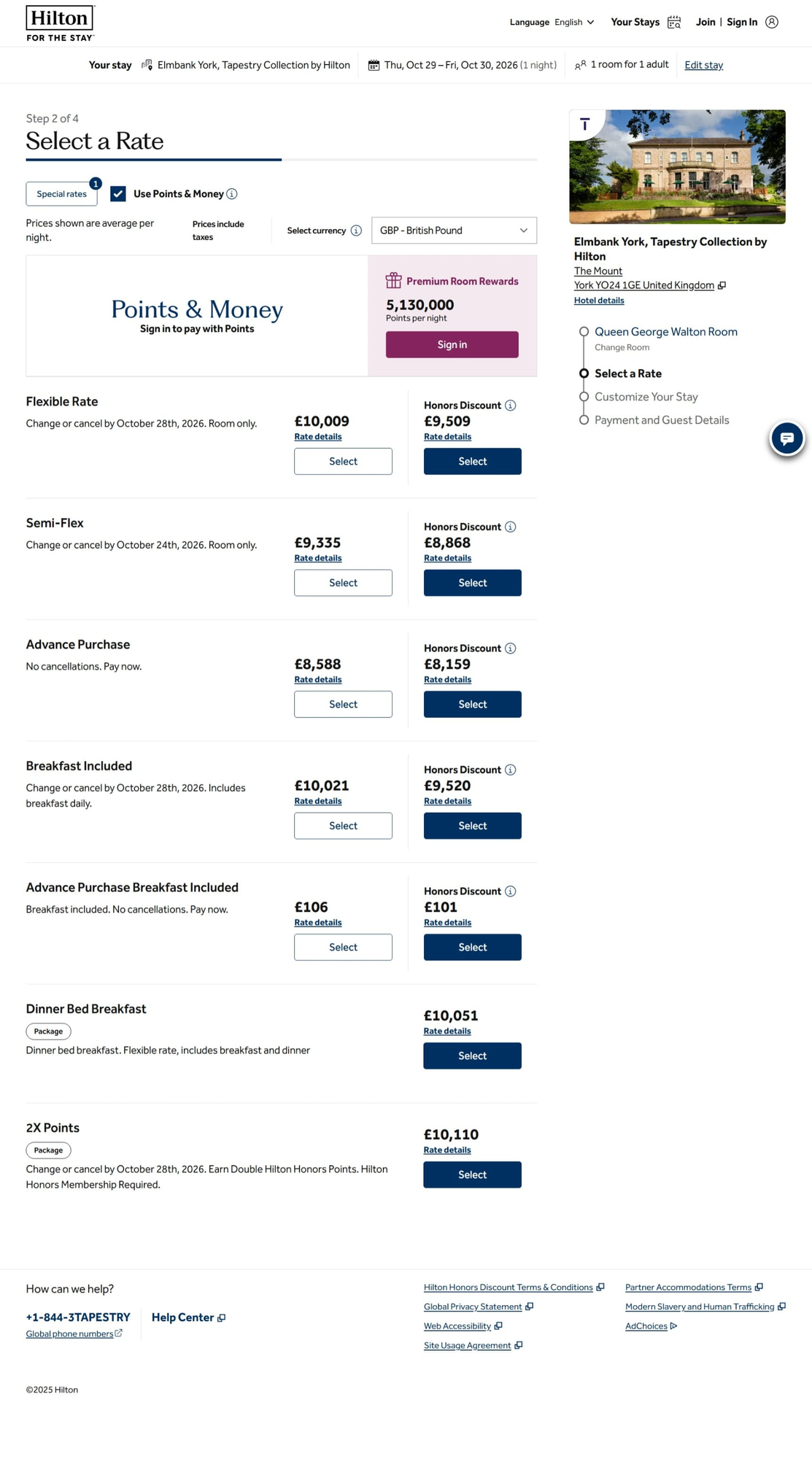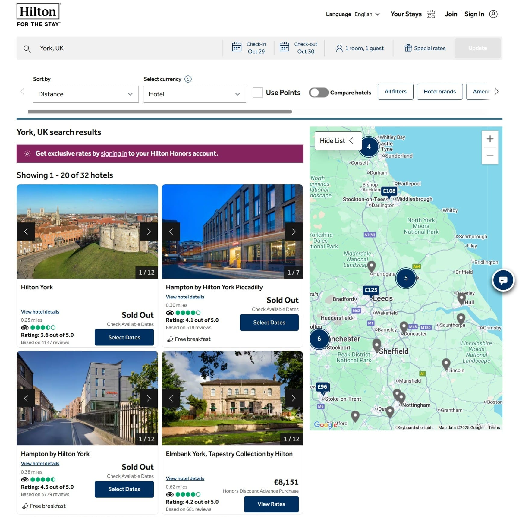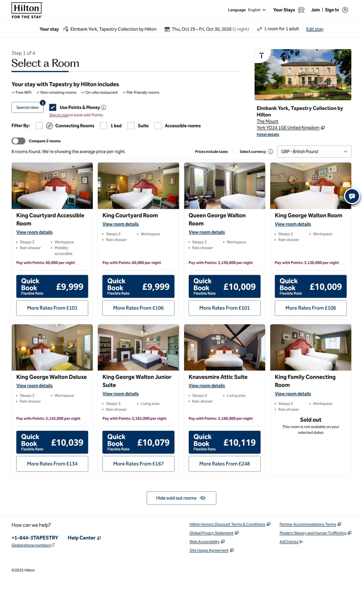 Search for a property in York, England and the Elmbank York, Tapestry Collection by Hilton returned a rate of 8151 GBP on October 29, 2026
