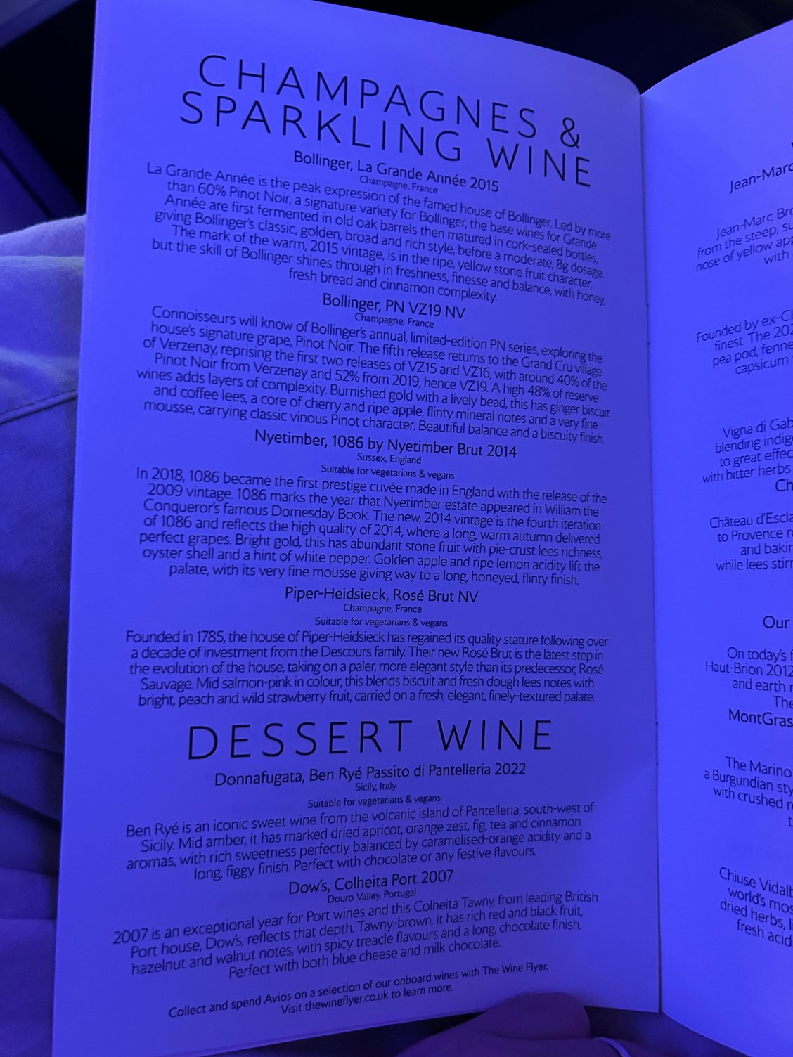 The champagne on other routes at the moment seem to be Bollinger La Grande Annee 2015, which is very nice although I generally don't have much more than a glass (if even that) but I had quite an amusing time coming back from DXB last week where we were at the gate for about 2 hours whilst they sorted out someone being offloaded as they were unwell and then getting their bags etc. and the lady across the aisle from me proceeded to get absolutely hammered with frequent top-ups. She then snored soundly all the way home.