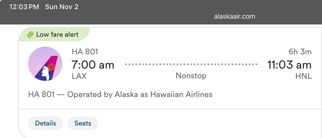 What about flights “operated by Alaska as Hawaiian”?