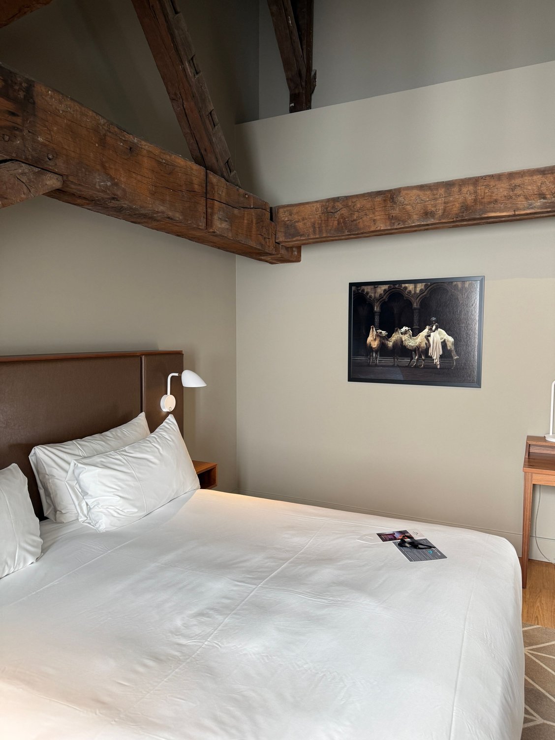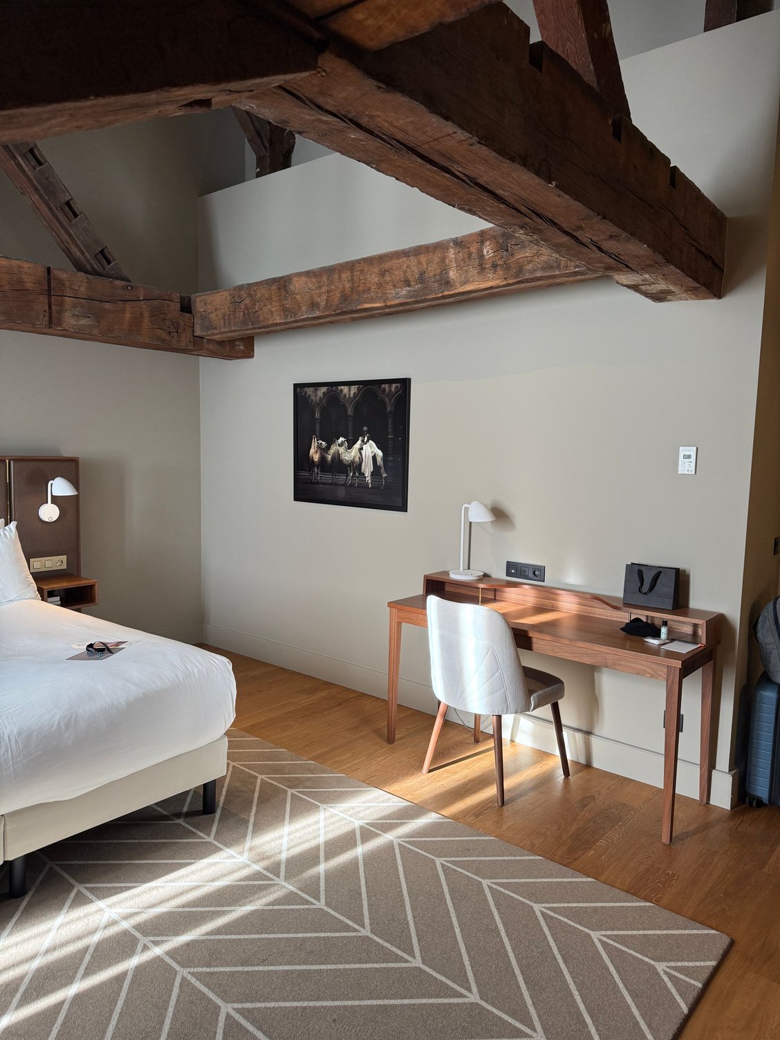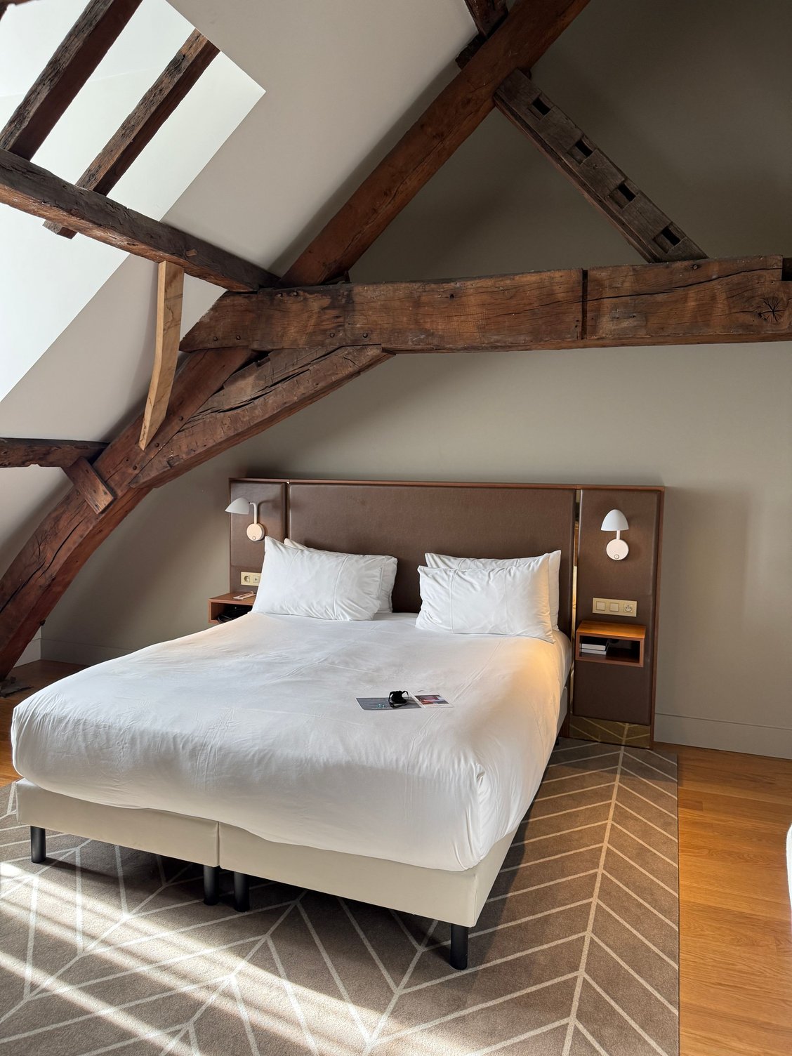 - The wood beams in my attic room are visually interesting