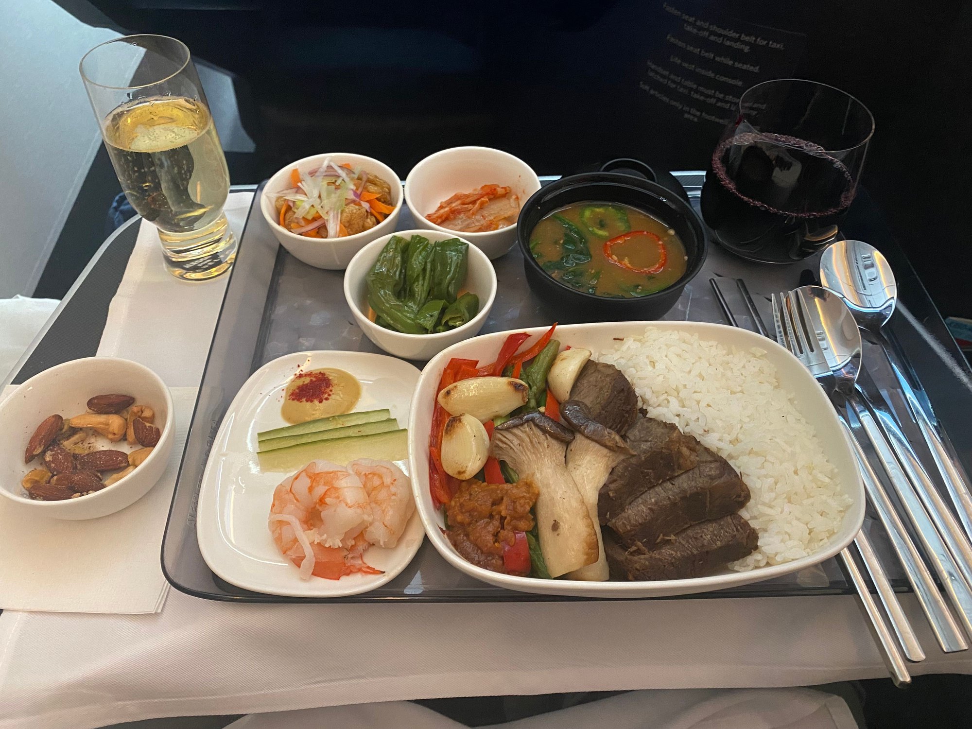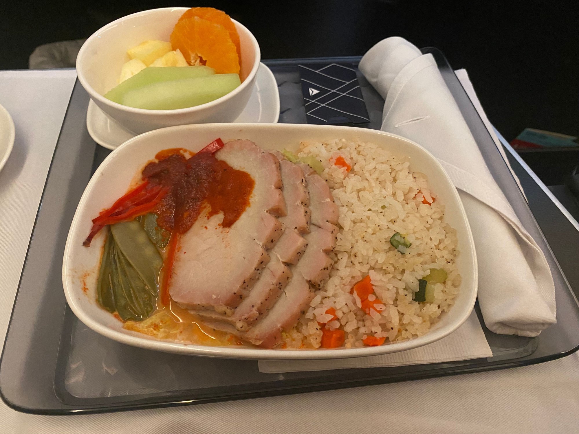 Pre-arrival meal was a Korean pork and rice - tasted better than it looked! Lots of flavor.