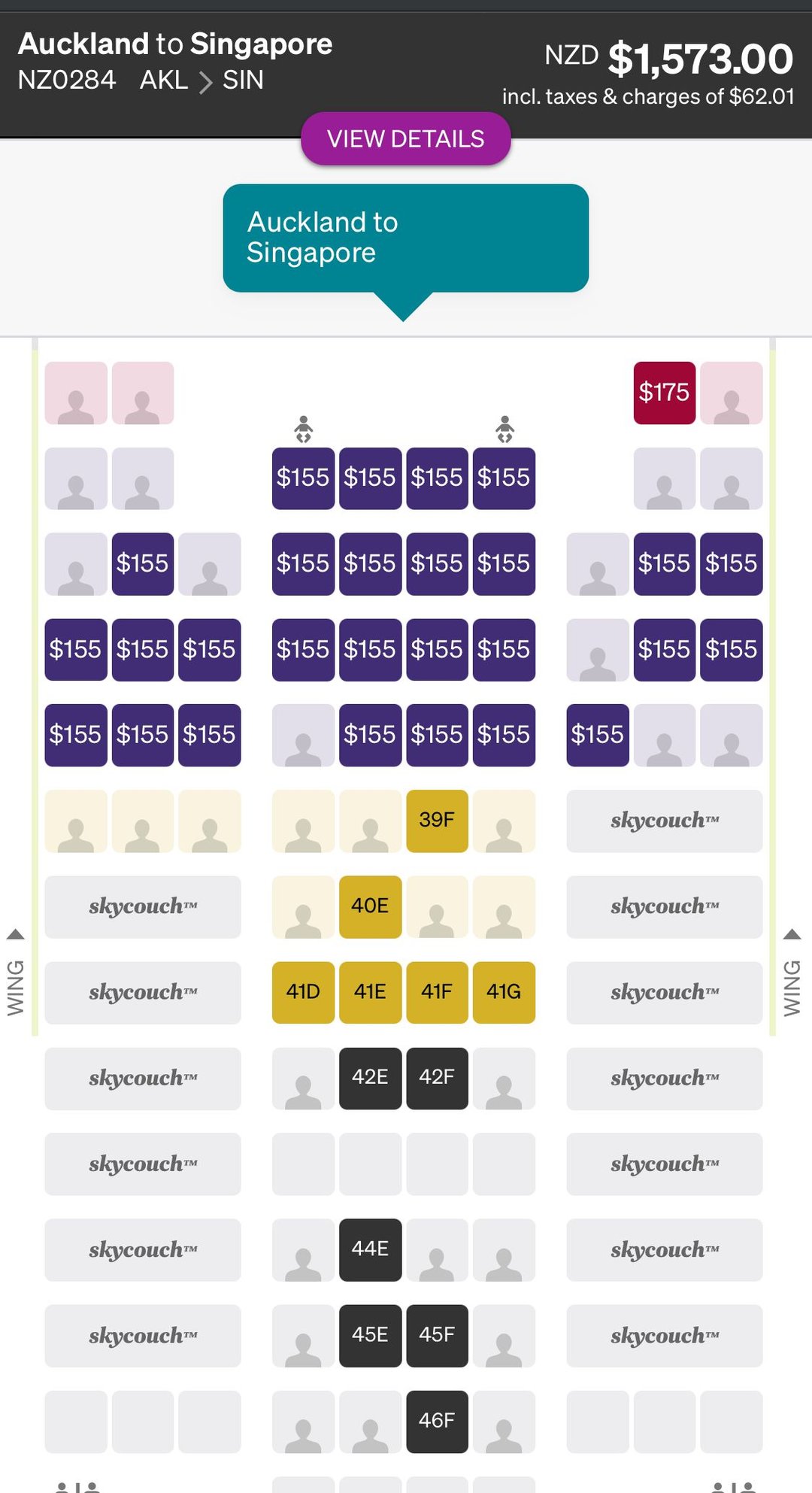 Seat select not avaliable AKL SIN 15/11