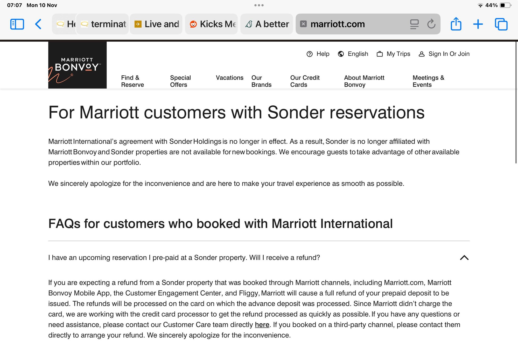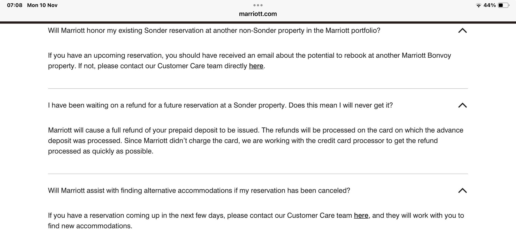 I am posting above Marriott's faq about Sonder going bust as visual statement or for those needing it in case of evidence.... before we are even getting more Bonvoyed at it disappears.