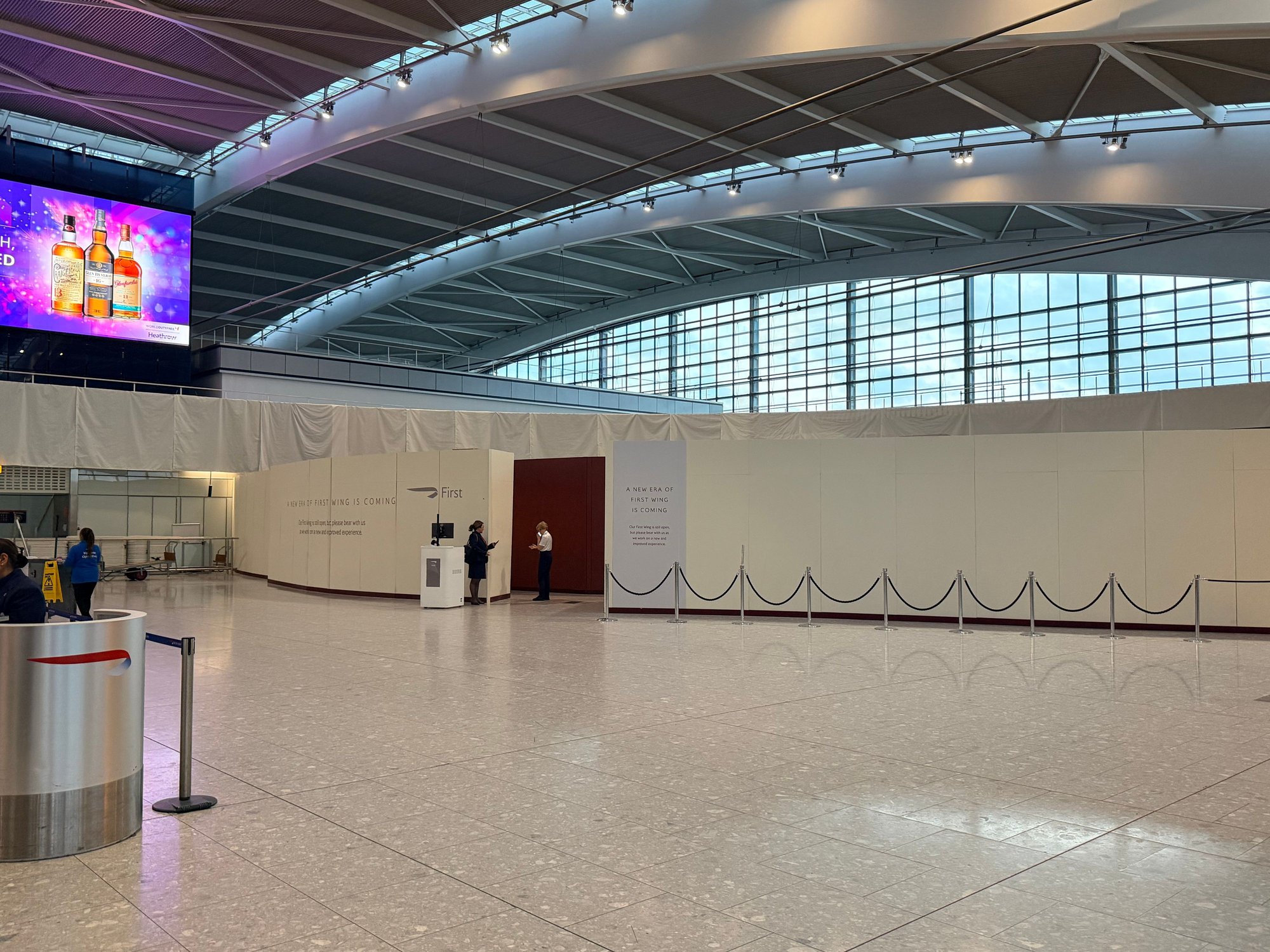 Renovations pretty major with new wooden panels replacing the lighter veneer, carrying right through to the entrance of the lounge itself. There are also new screens and panelling above the check in desks.