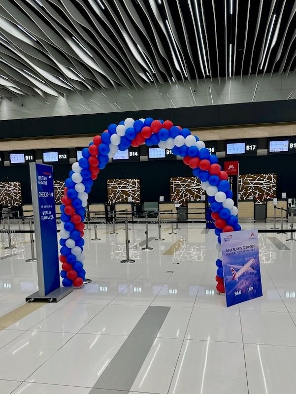We got to the airport at 22.00, which meant that we had a wait of about 50 minutes before check-in opened. We discovered, to our surprise, that our flight was an inaugural, of sorts, kicking off a new daily service for the winter season. This represented quite a turnaround from BA, who had indicated in autumn 2024 that they planned to drop the Bahrain route, only to reinstate a three-days-a-week service in spring/summer 2025, and then move to daily flights for autumn/winter season. Bahrain International Airport and BA were determined to make the most of the occasion, with a balloon arch and cake at check-in, and a small gift as we boarded.