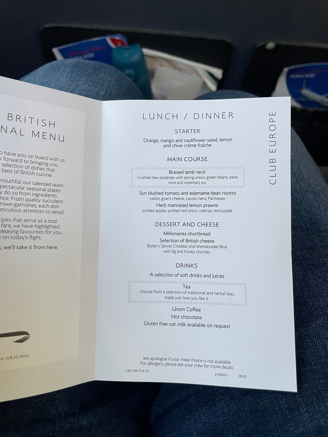 Menu has been in circulation since May(!), but the food was tasty and the lamb was one of my better CE meals.