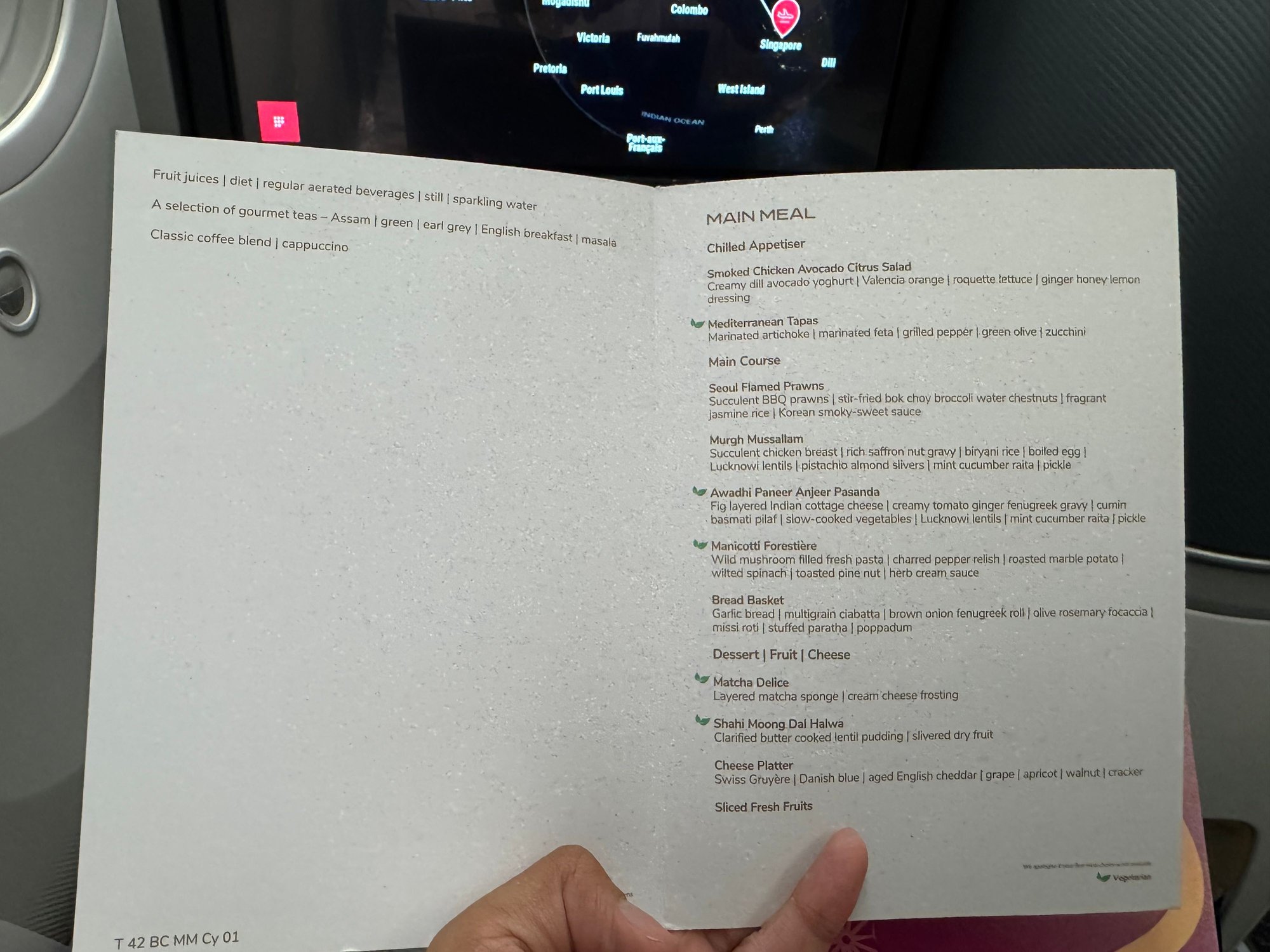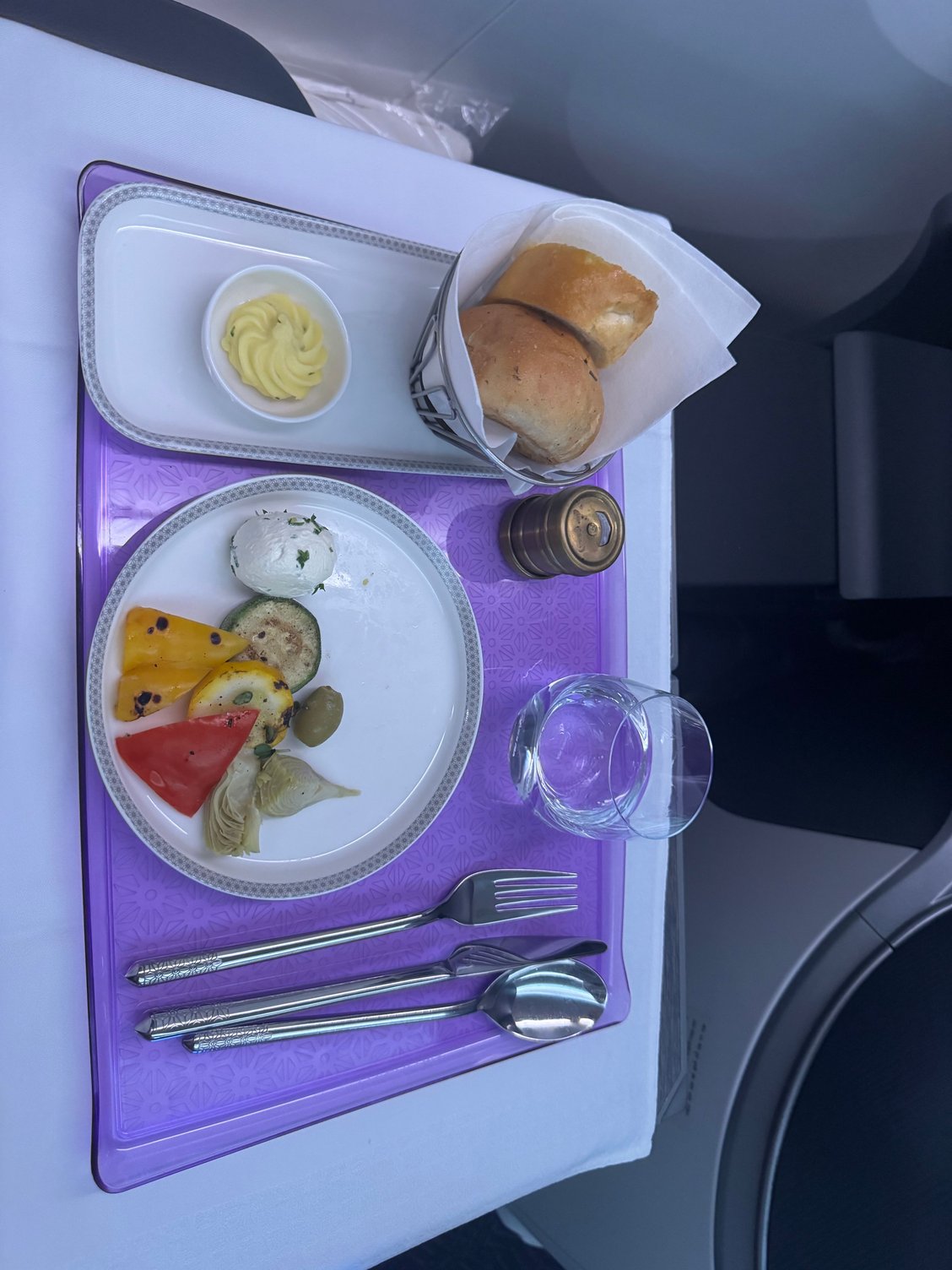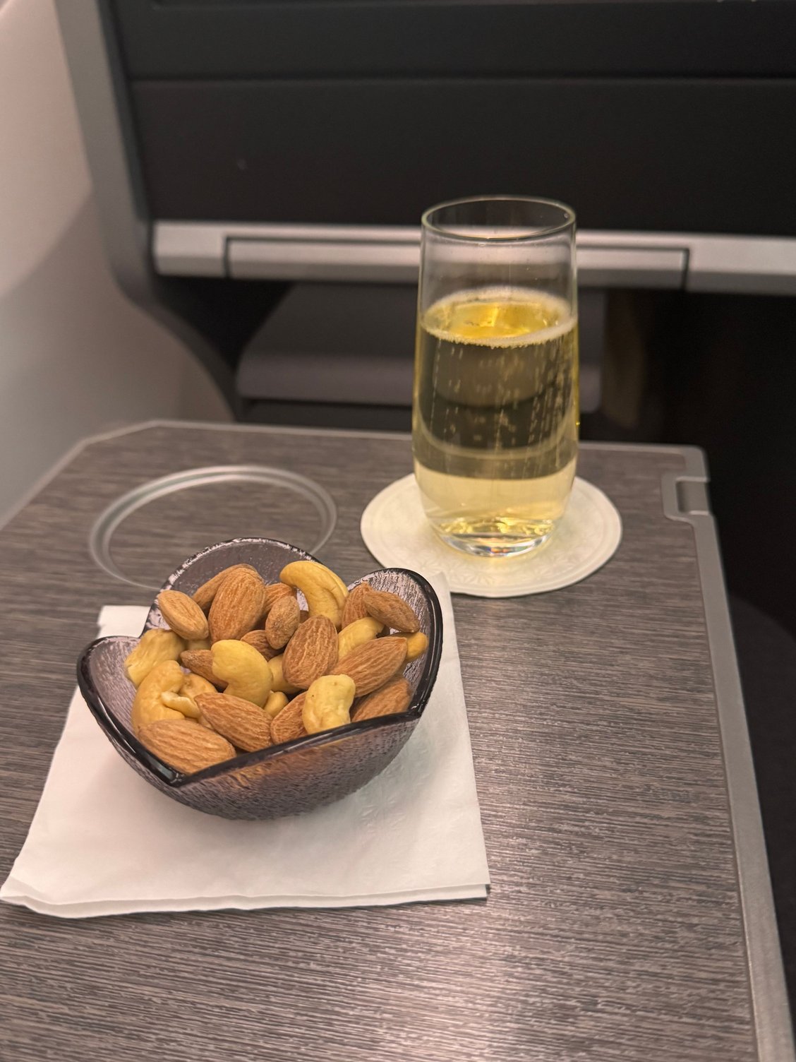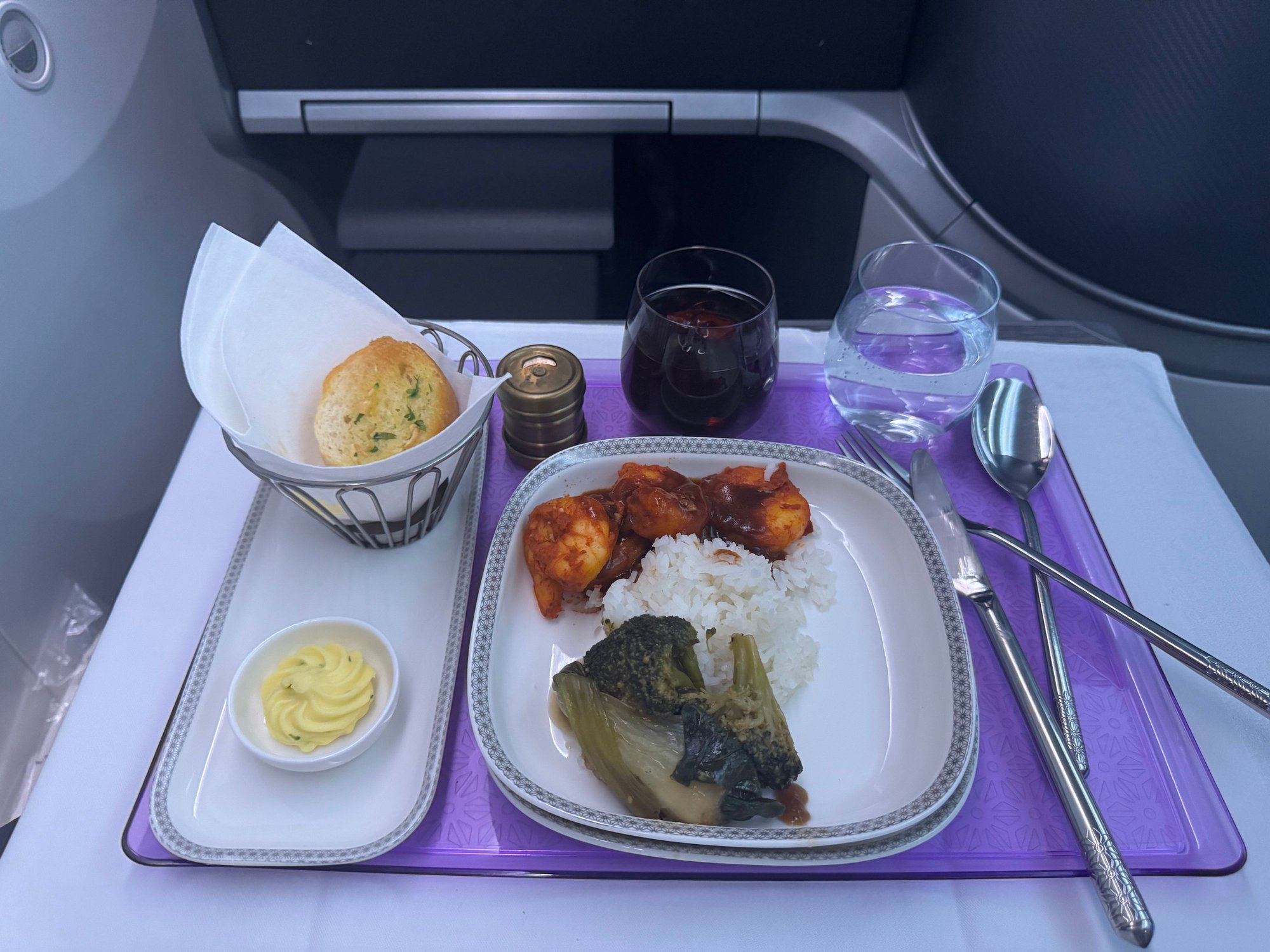 The order of the photos is a bit messed up but I got the Seoul Flamed Prawns. I will say that AI international catering is lacklustre compared to the domestic sector I had just had right before. Other than the champagne that was always kept full by the crew, the cheese plate was the only solid part of the food offering.