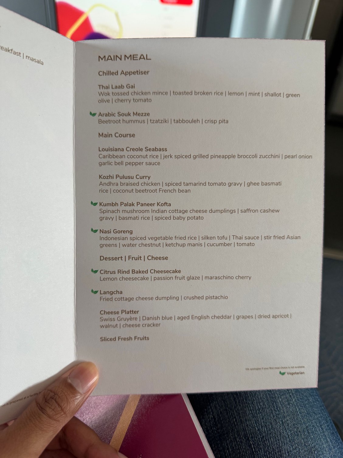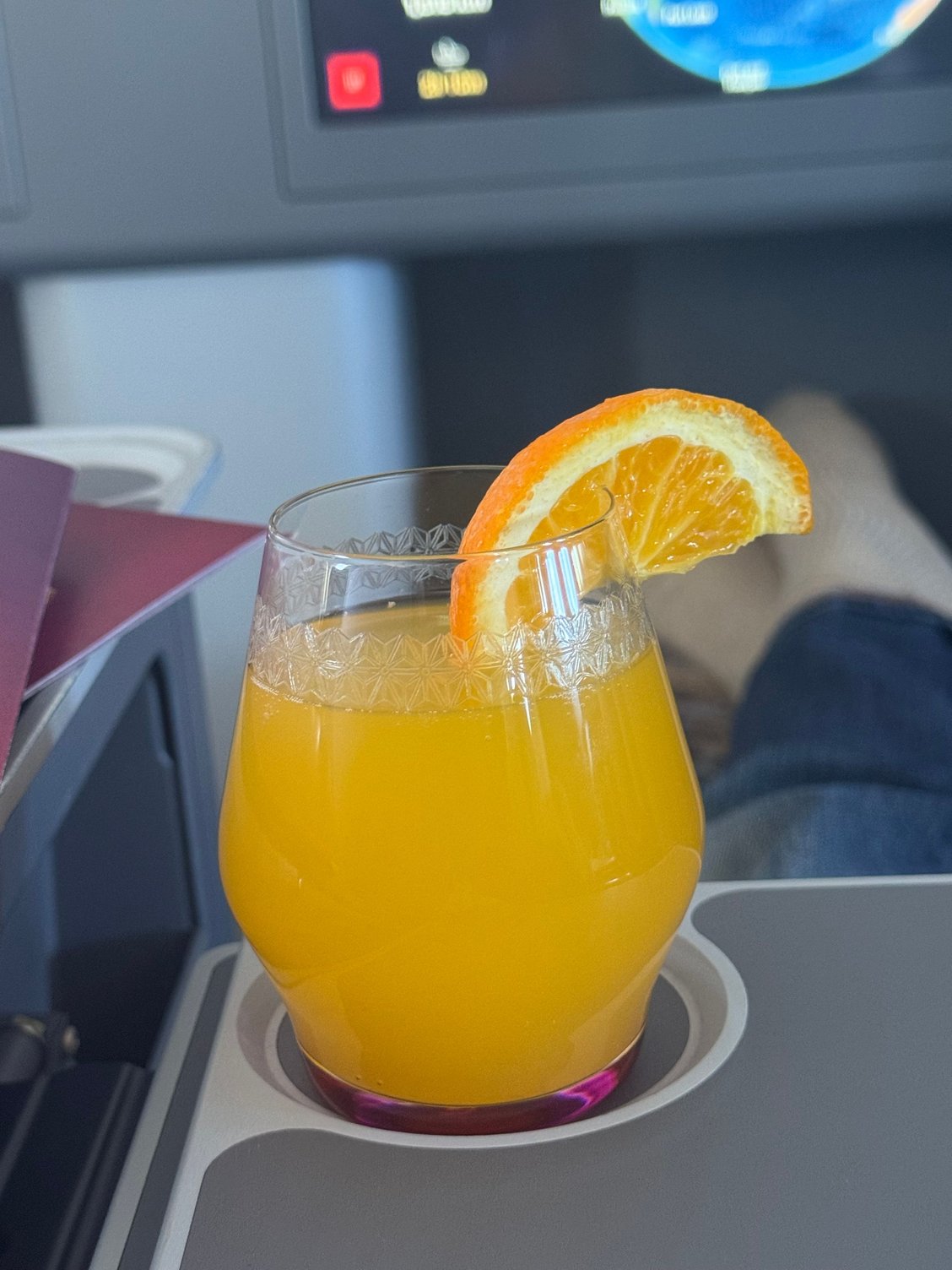 I got the Louisiana Creole Seabass and mimosas. Once again a lacklustre meal on an international segment and by virtue of being a BOM based crew or because it was a narrow body (A321LR) crew, the service was lacklustre.