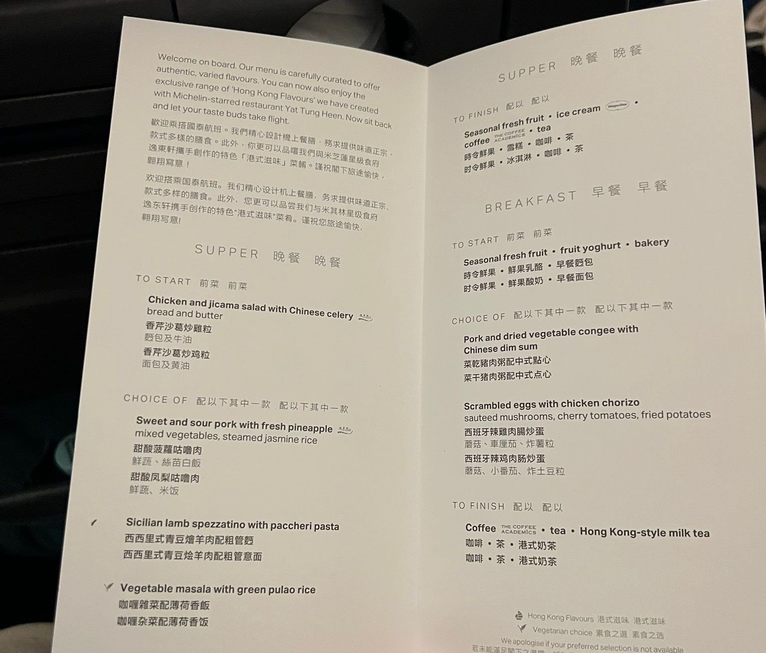 is there something special with UK flights, that they receive a separate set of menu?