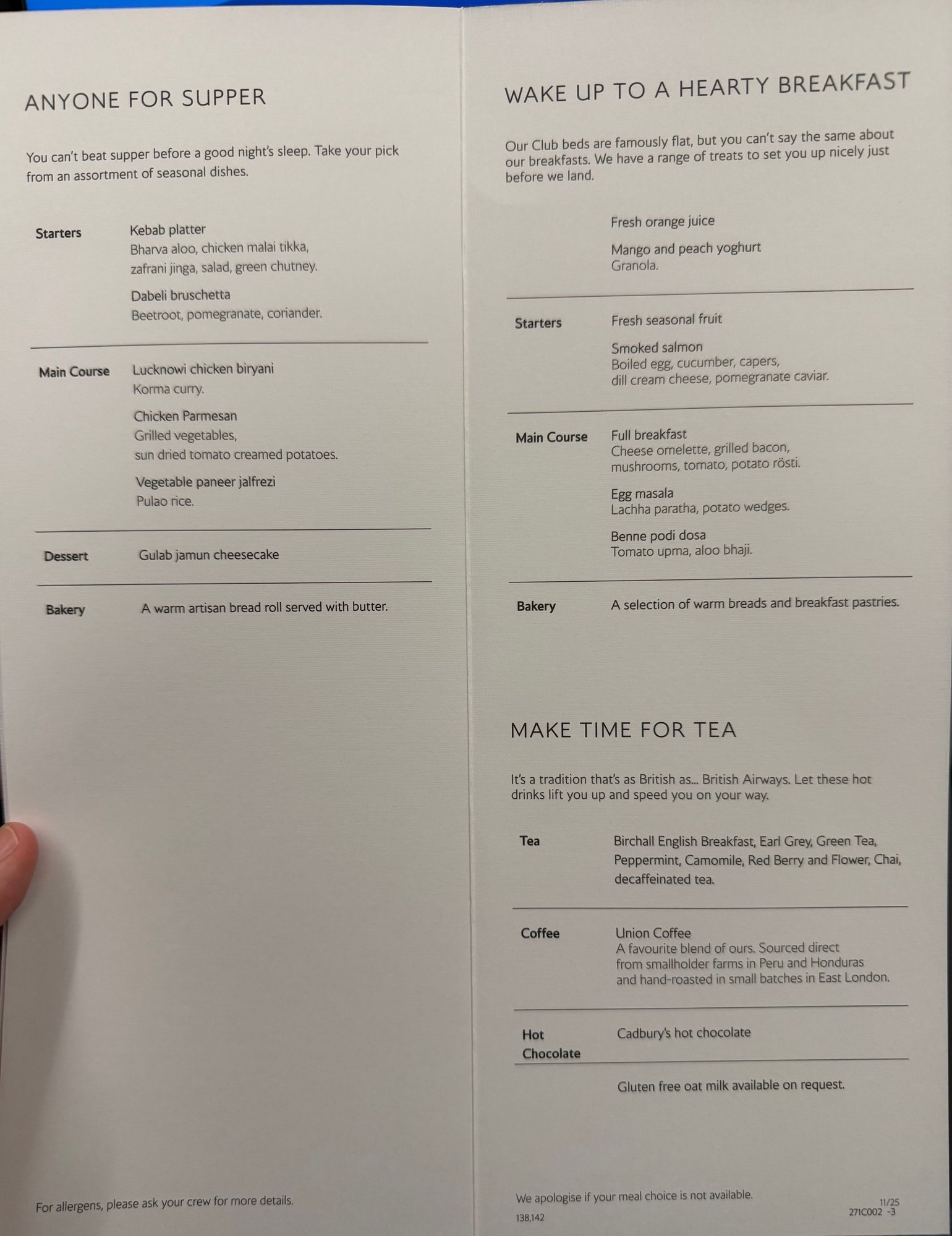 Current menu for both BA138 (BOM>LHR) and BA142 (DEL>LHR).