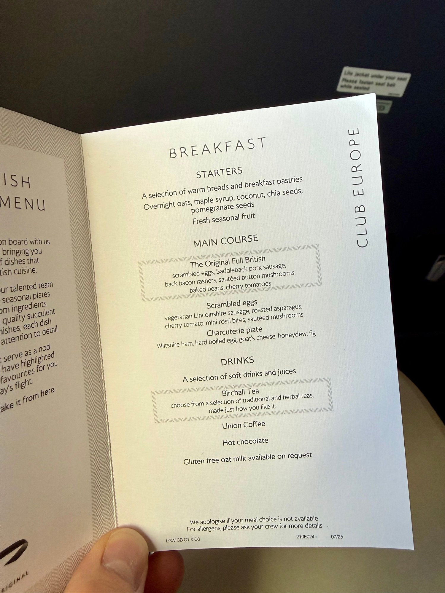 London to Malta, typical breakfast except I’ve not yet seen the overnight oats or the vegetarian full English (was actually wanting the omelette!).
