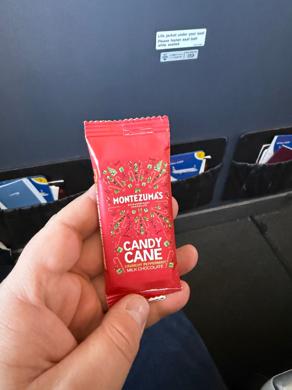 The snacks included some festive chocolate (which essentially tastes like a crunch After Eight mint chocolate):