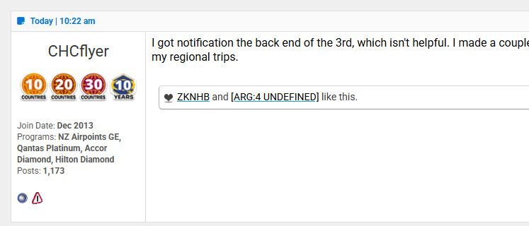 FlyerTalk Forums - View Single Post - "[ARG:4 UNDEFINED]" Error when Liking Posts