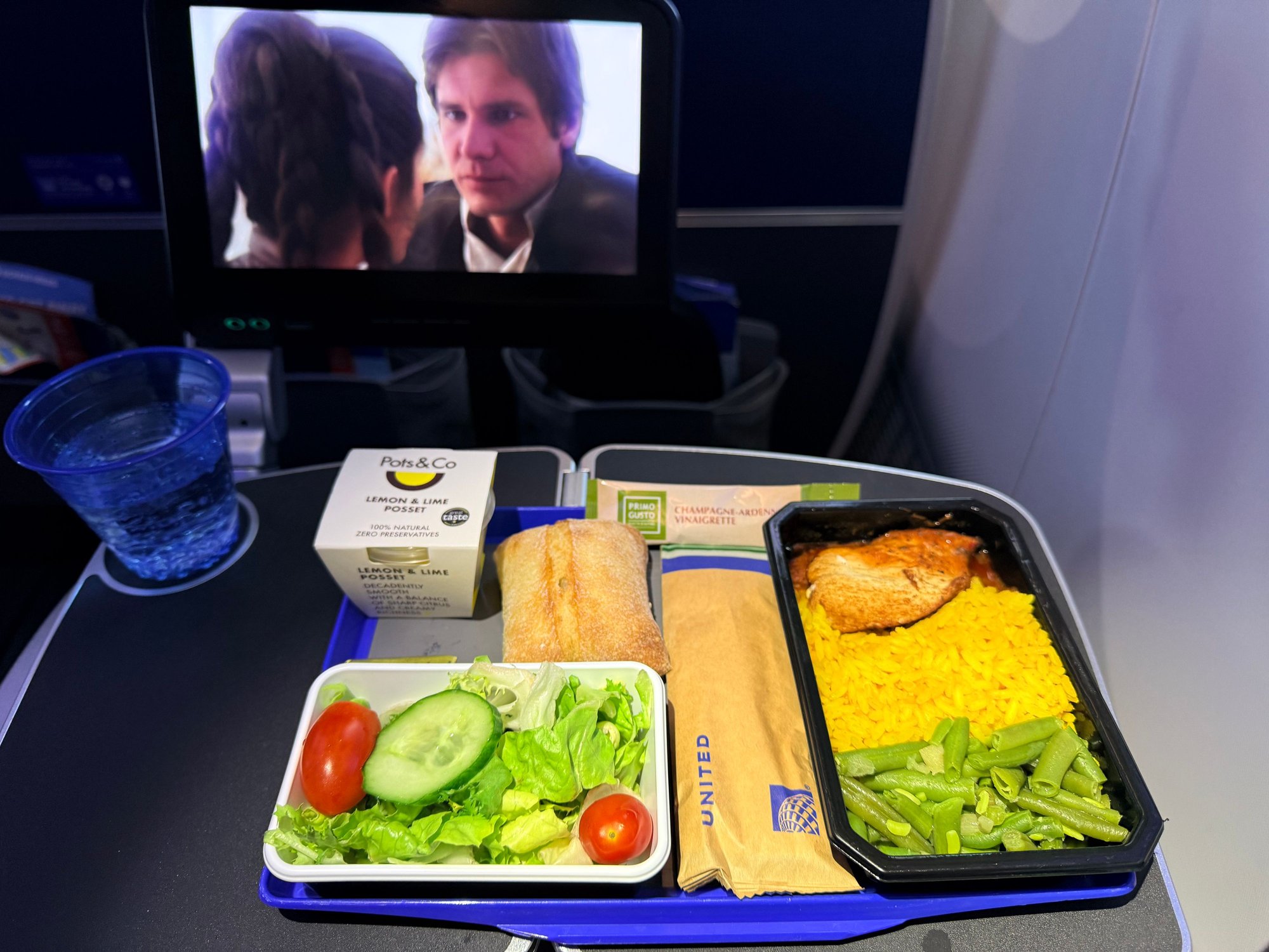 Piri piri chicken on UA973, BRU-ORD, a little bit ago. Not too much flavor and I’m sorry I forgot to bring some hot sauce with me on the trip.