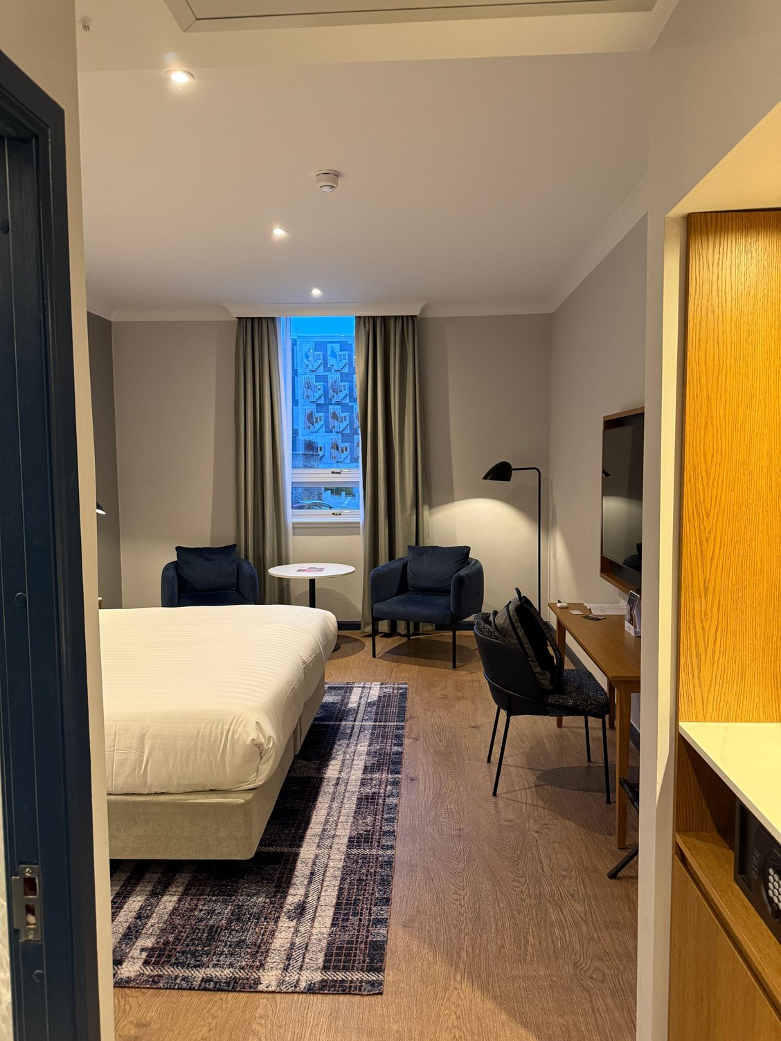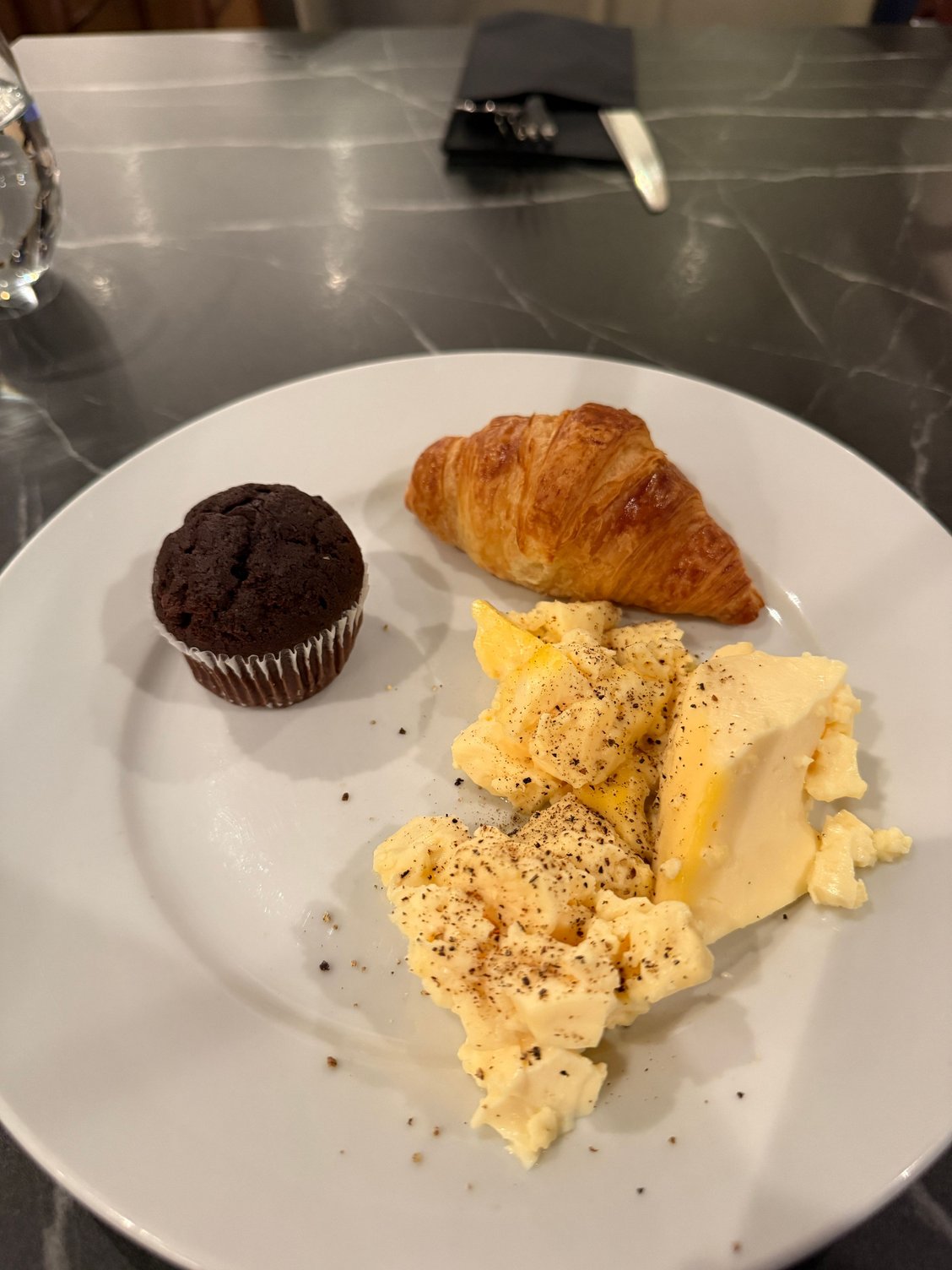 - Lounge breakfast (restaurant is 5 pounds extra) was not very good - I didn’t like the scrambled eggs, and the milk part of the coffee machine was broken so you could only have Americanos or espresso - the chocolate muffin was bad, the croissant was okay