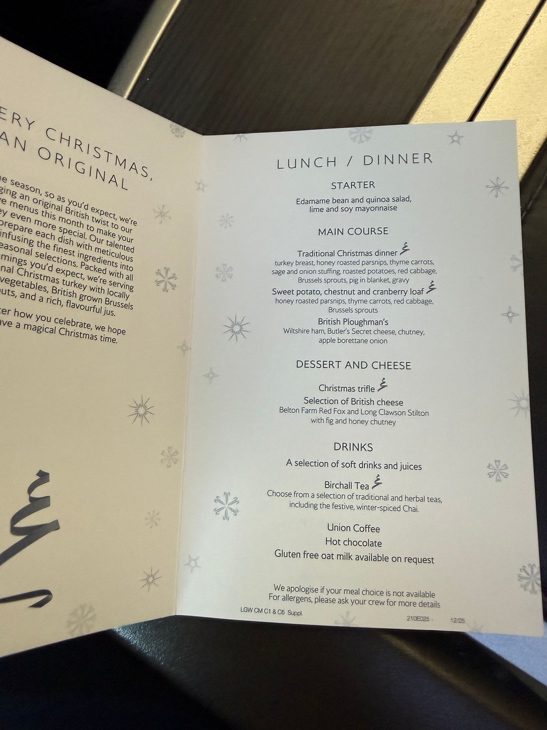 BA2642 LGW - AGP Festive Menu - Live!