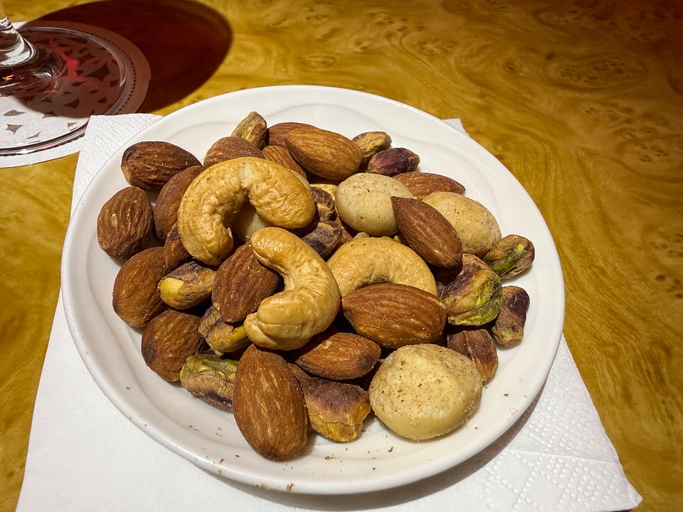 Pre-takeoff watermelon juice & after takeoff beverage & warmed mixed nuts