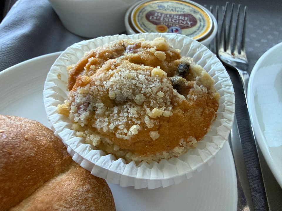 Kaiser Roll, Blueberry Muffin, Croissant with Butter