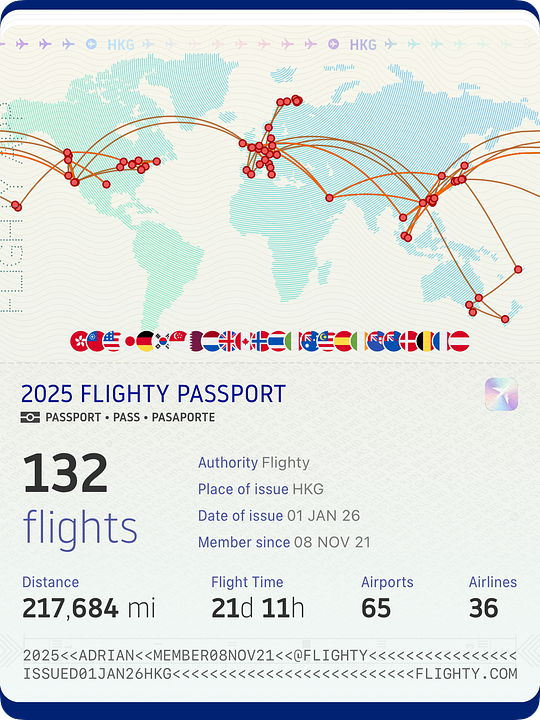 I continue to travel a bit less, which will unfortunately be the trend. The airline world has changed and many cutbacks post-Covid have gotten worst. I focused on seeking lesser known airlines in the rest of the world and I was so happy to fly the milk run in Norway. I finally flew the high density 737-8 variant and have little desire to return. Just need to cross that aircraft type off my list. Fiji Airways is a pleasant surprise and AeroItalia is a major disappointment. In terms of inaugural flights, I flew Alaska (well Hawaiian)’s inaugural flights to Tokyo and from Seoul Incheon to Seattle. It was underwhelming and therefore I decide to skip Alaska’s European inaugural flights in 2026 given Alaska is simply not ready especially in the premium cabin. All the promises were not kept so I will save my money for more interesting inaugural.