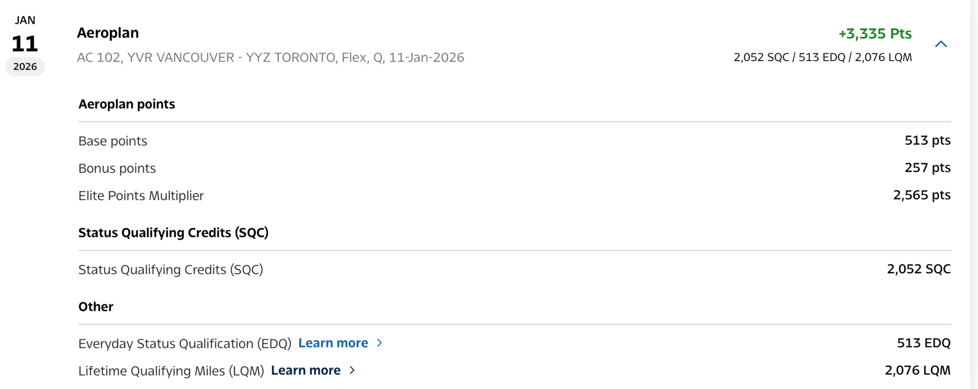 Missing / incorrect flight activity (SQC / Aeroplan points, 2026+)