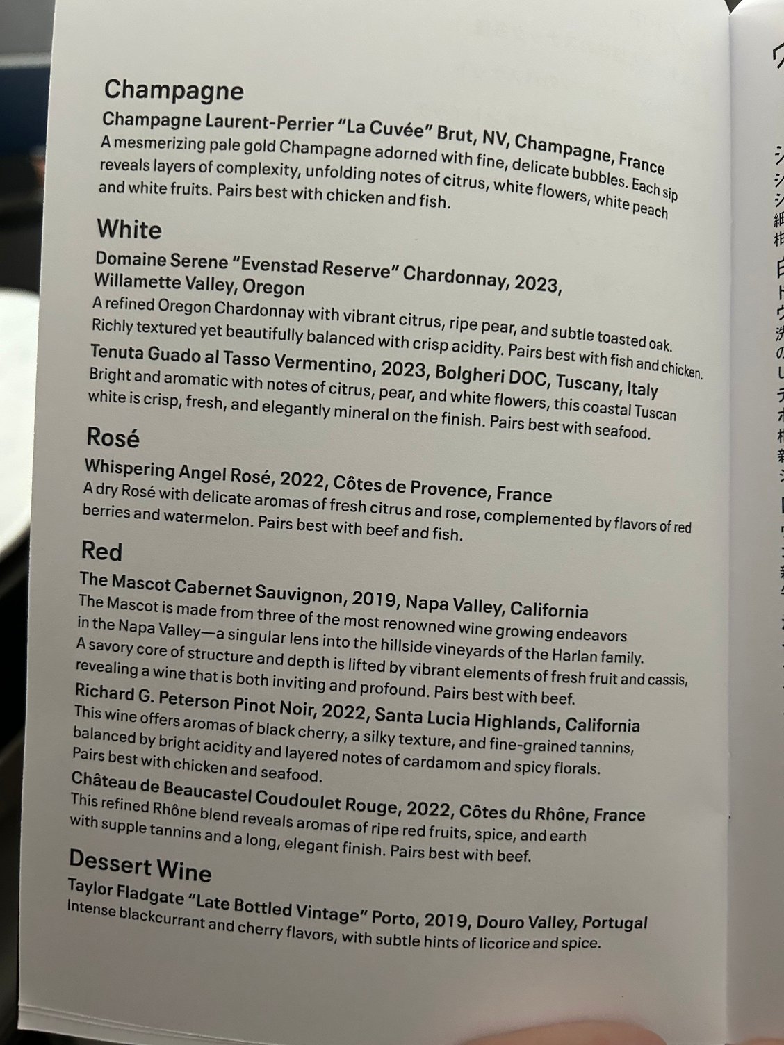 Here’s the wine list for LAX to HND today. Any recs?