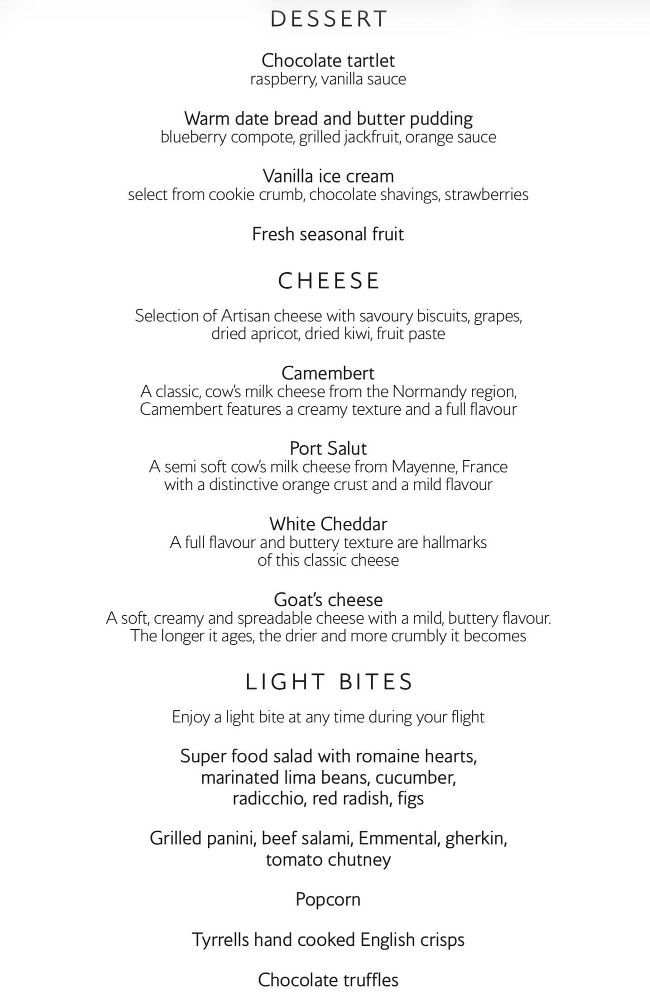 Well all good things must come to an end, and my inbound from KUL is rapidly approaching. February menu below courtesy of YouFirst, and some interesting food options by the looks of it. Wine list is very similar to the outbound, and none the worse for that in my view as the ones I had were all very pleasant. My only slight gripe is that the cheeses look a little uninspiring (I was sadly too tired to sample the cheese course on the way out although it looked very appealing).