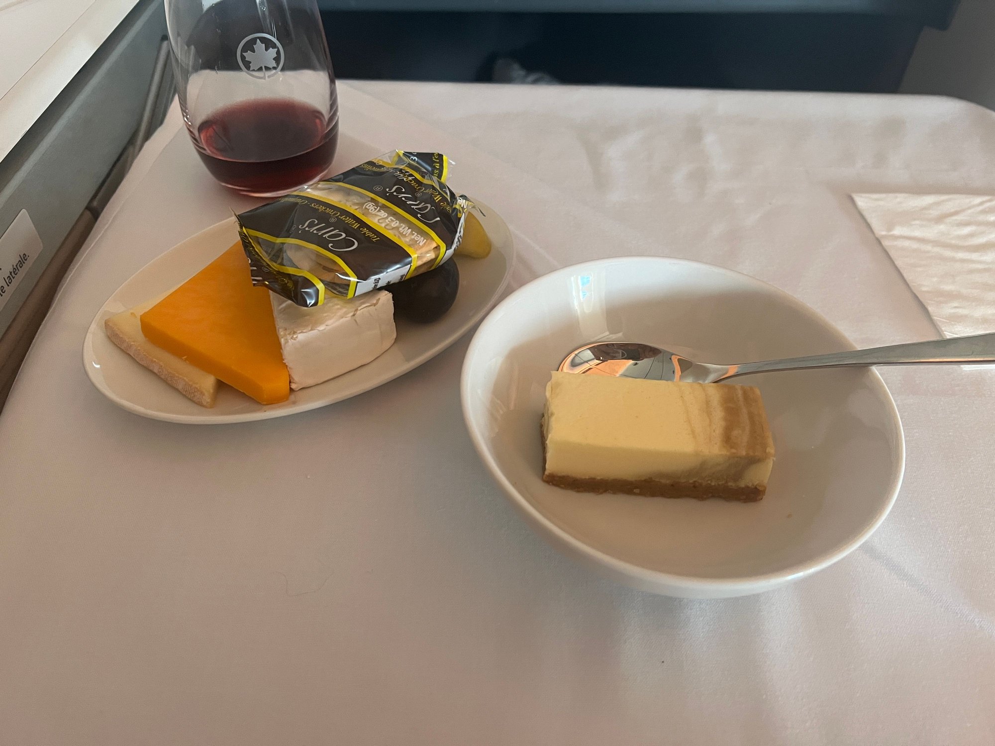 Main: RED WINE BRAISED BEEF - Dauphinoise potato gratin and green beansCheese and dessert: Oka, Brie, cheddar, grapes, crackers; Cappuccino cheesecake
