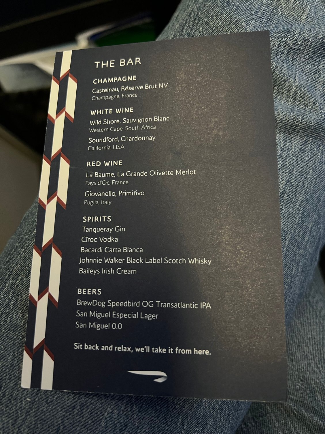 The Primitivo is nice enough but I wish they’d bring the fantastic Zinfandel back. It’s one of the few wines you can actually taste at altitude!