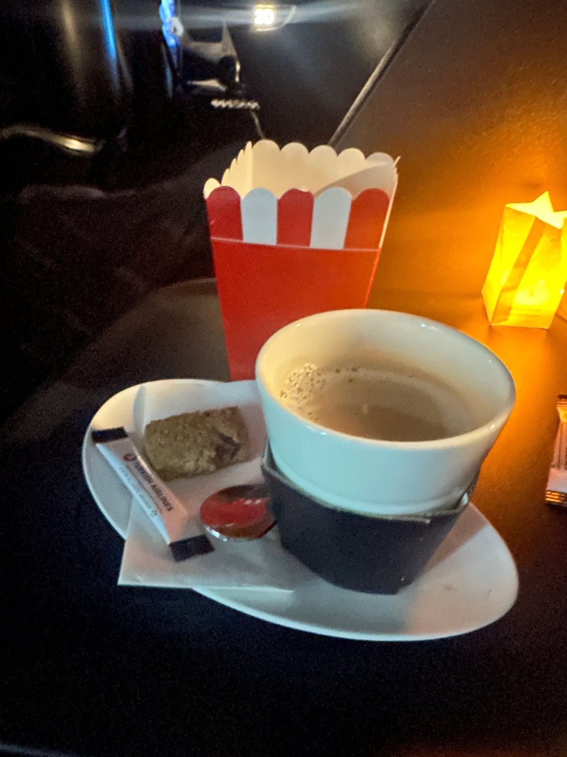 I thought you were joking about the popcorn, but I see they had some setup in the galley complete with little boxes for it. Hopefully you were able to have popcorn during the game 🍿