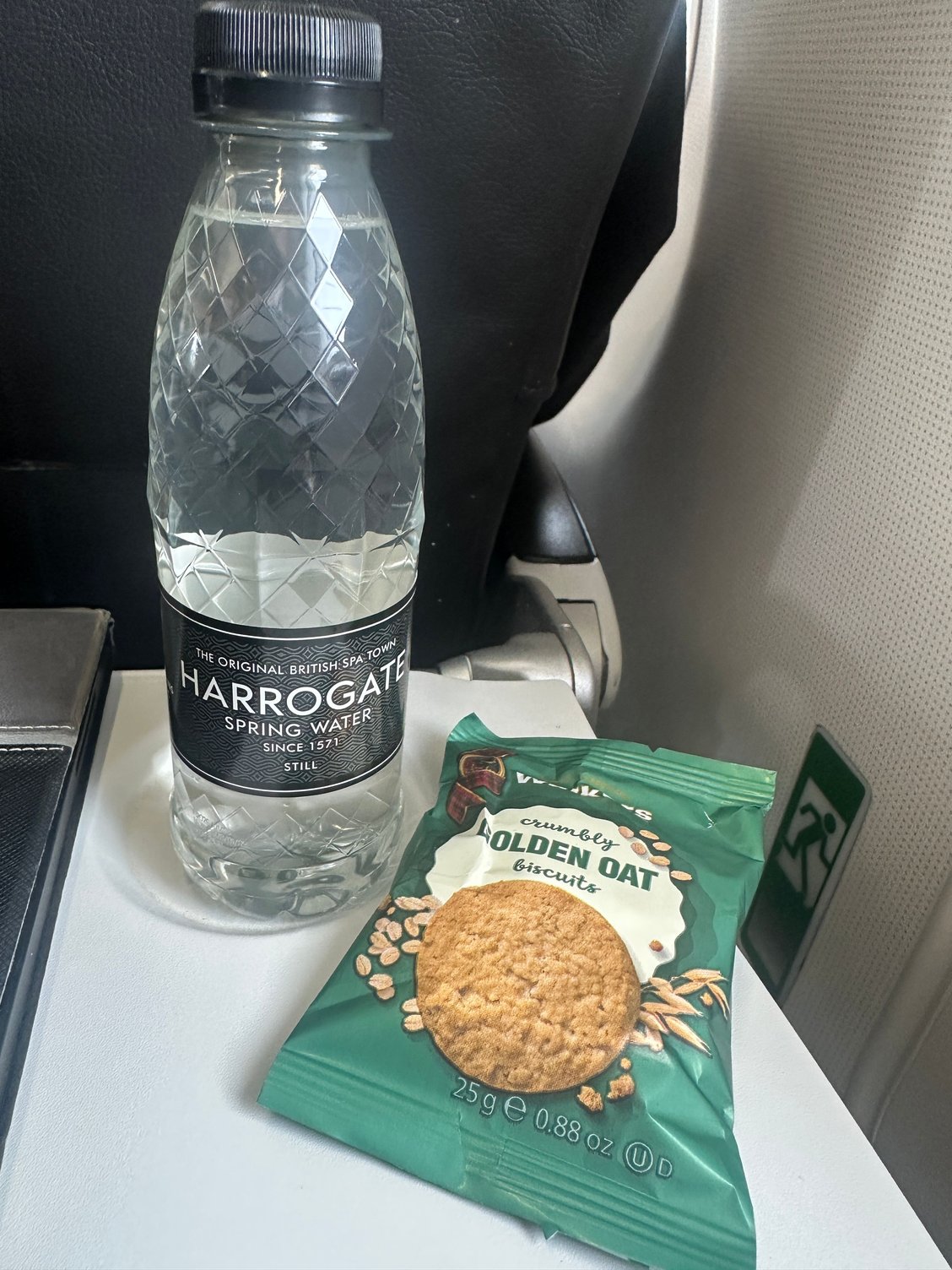 10 minutes into the flight the water and biscuits were distributed and at least it’s nice to see they’re no longer serving those awful generic biscuits have gone back to Walkers.