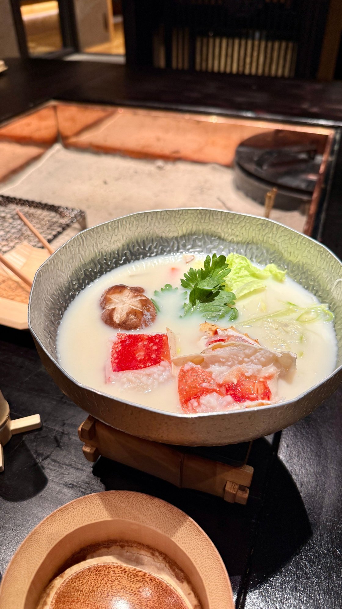Soy milk based crab hot pot. Perfect for the cold weather. There was also an entire ise ebi, a beef entree, and a rice course.