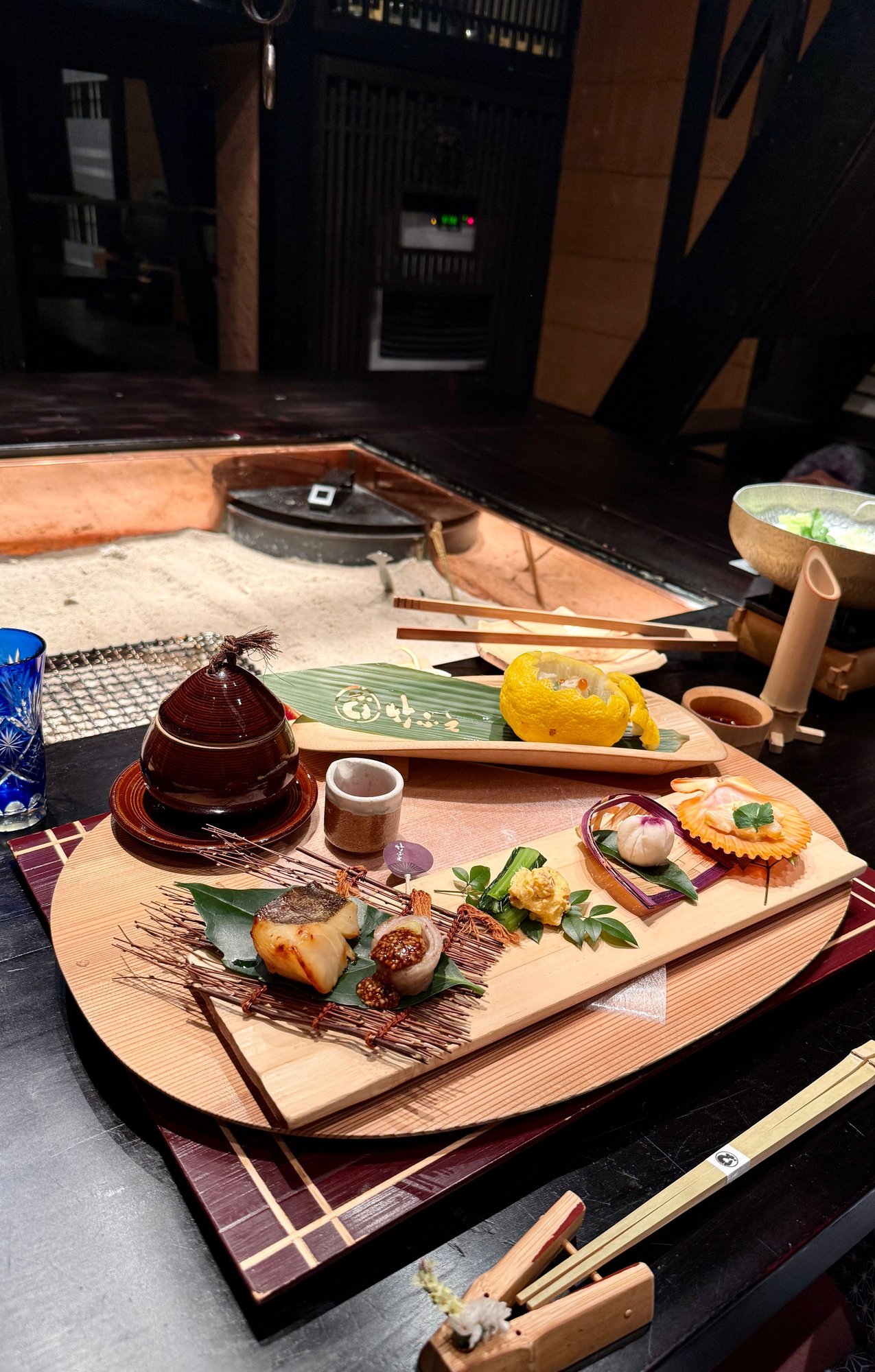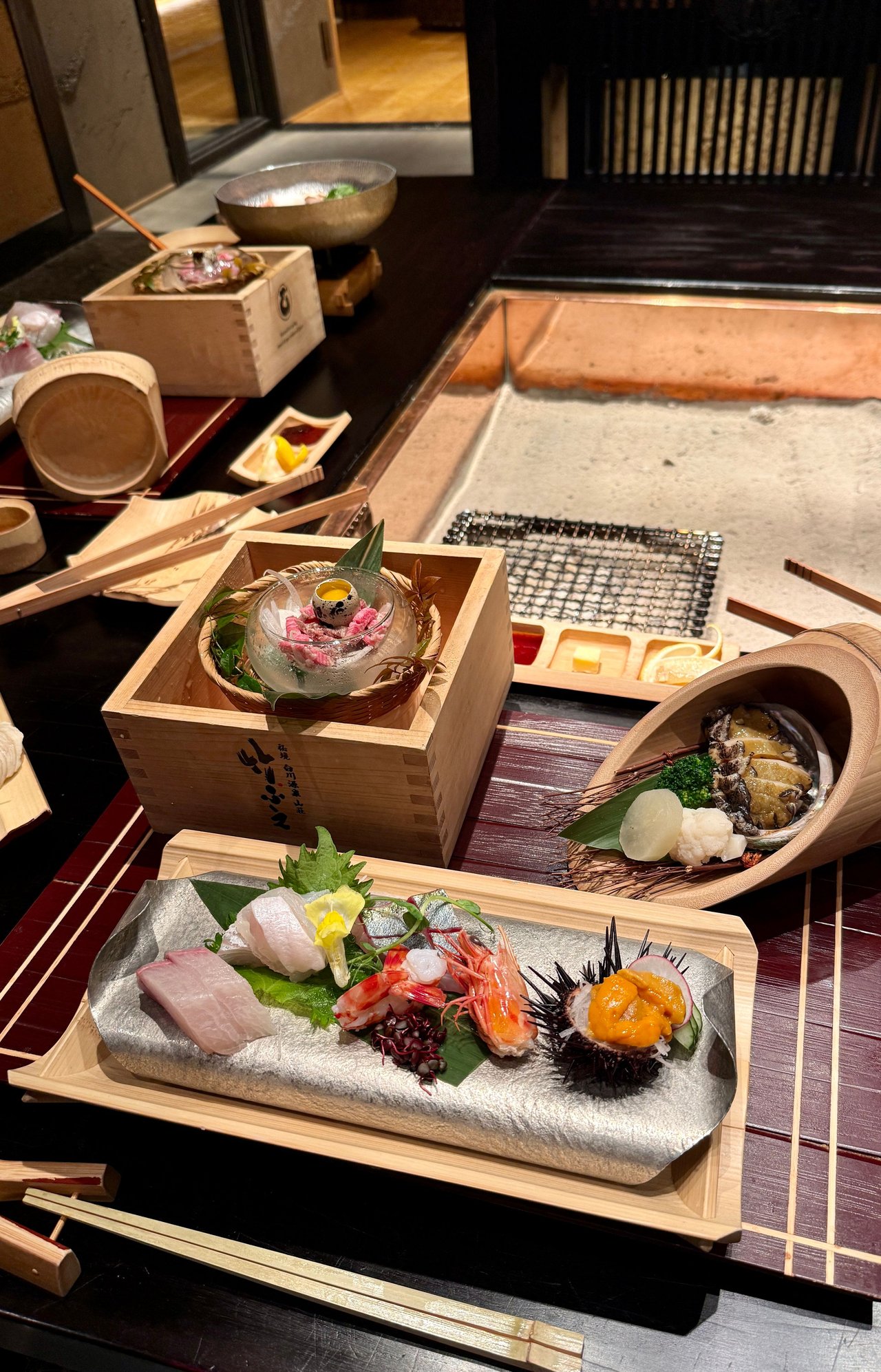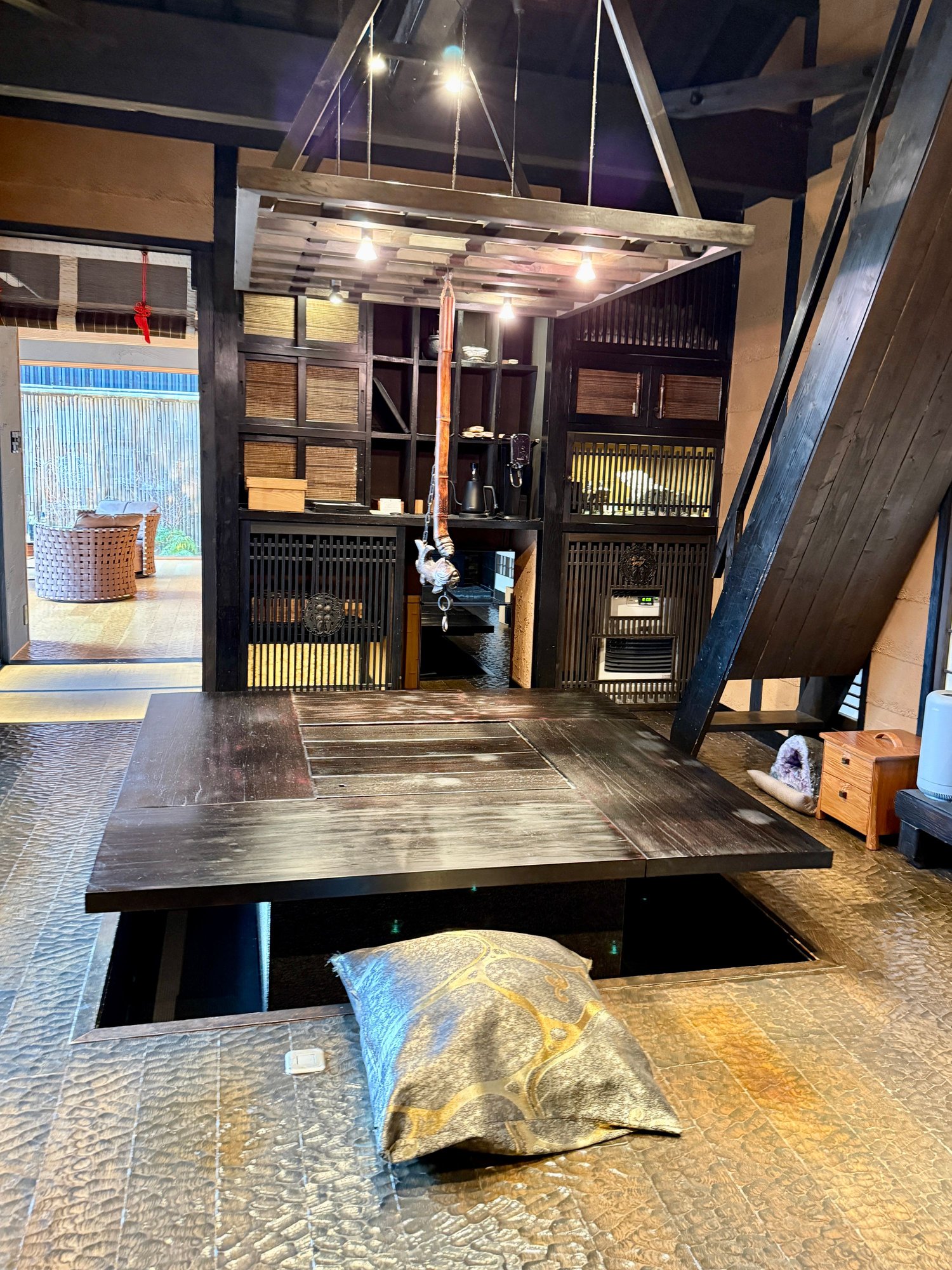 - The functional irori was awesome to eat meals at.