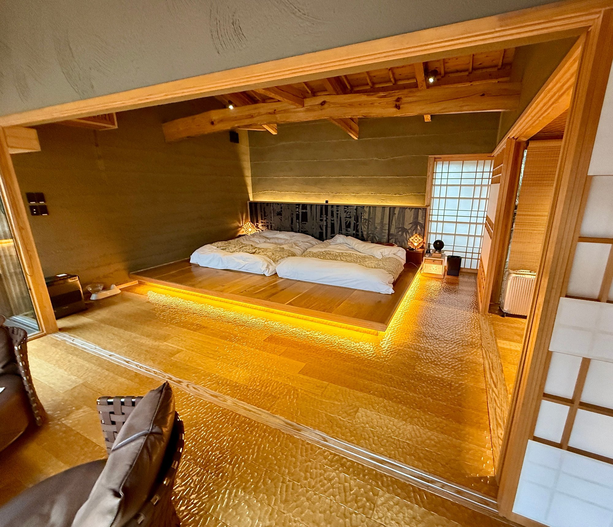 The room we stayed in was Shien-An. Each room has a different setup, but we were drawn to the backyard with a variety of onsens and the spacious layout with dedicated bedroom area. Overall we loved the room, although there were some small drawbacks.