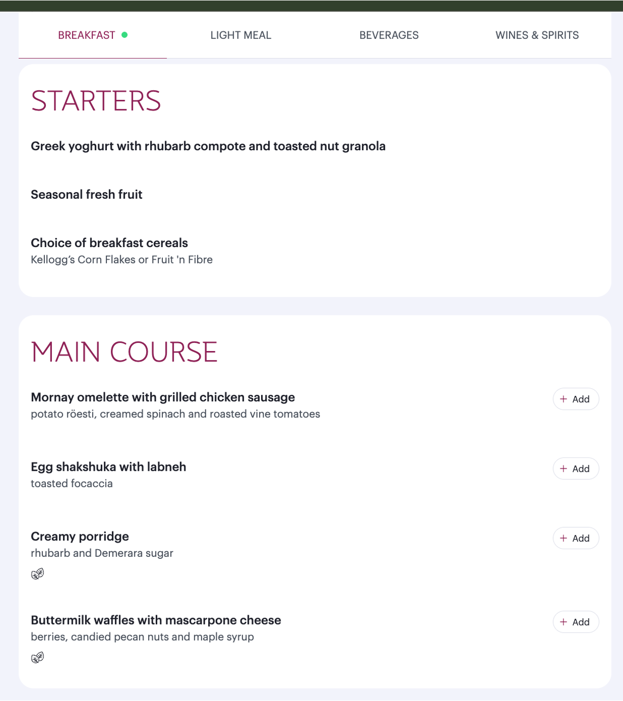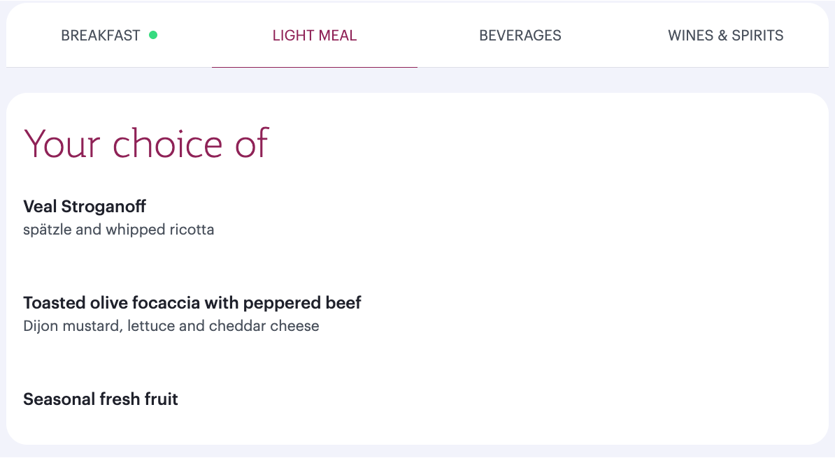 Disappointing light meal options with this flight arriving well after UK lunchtime.